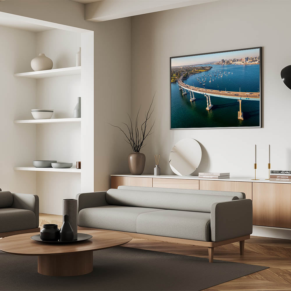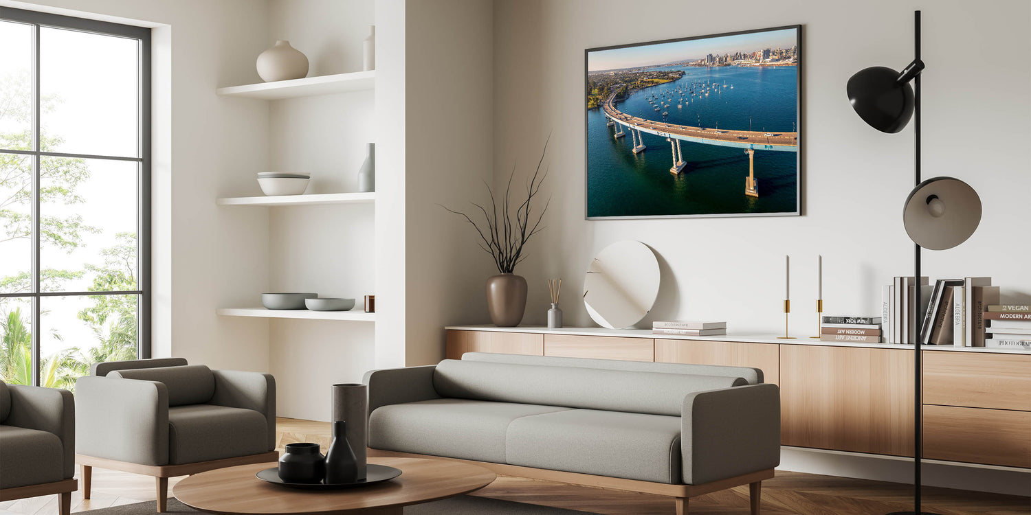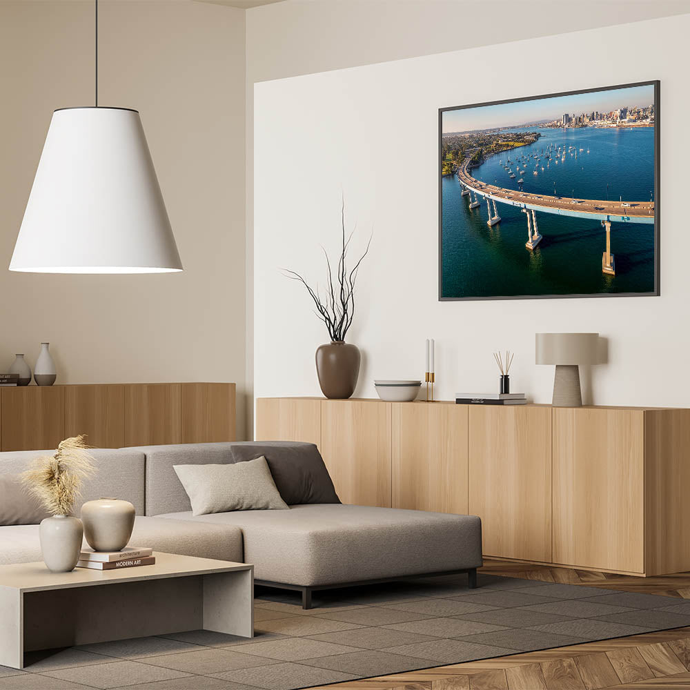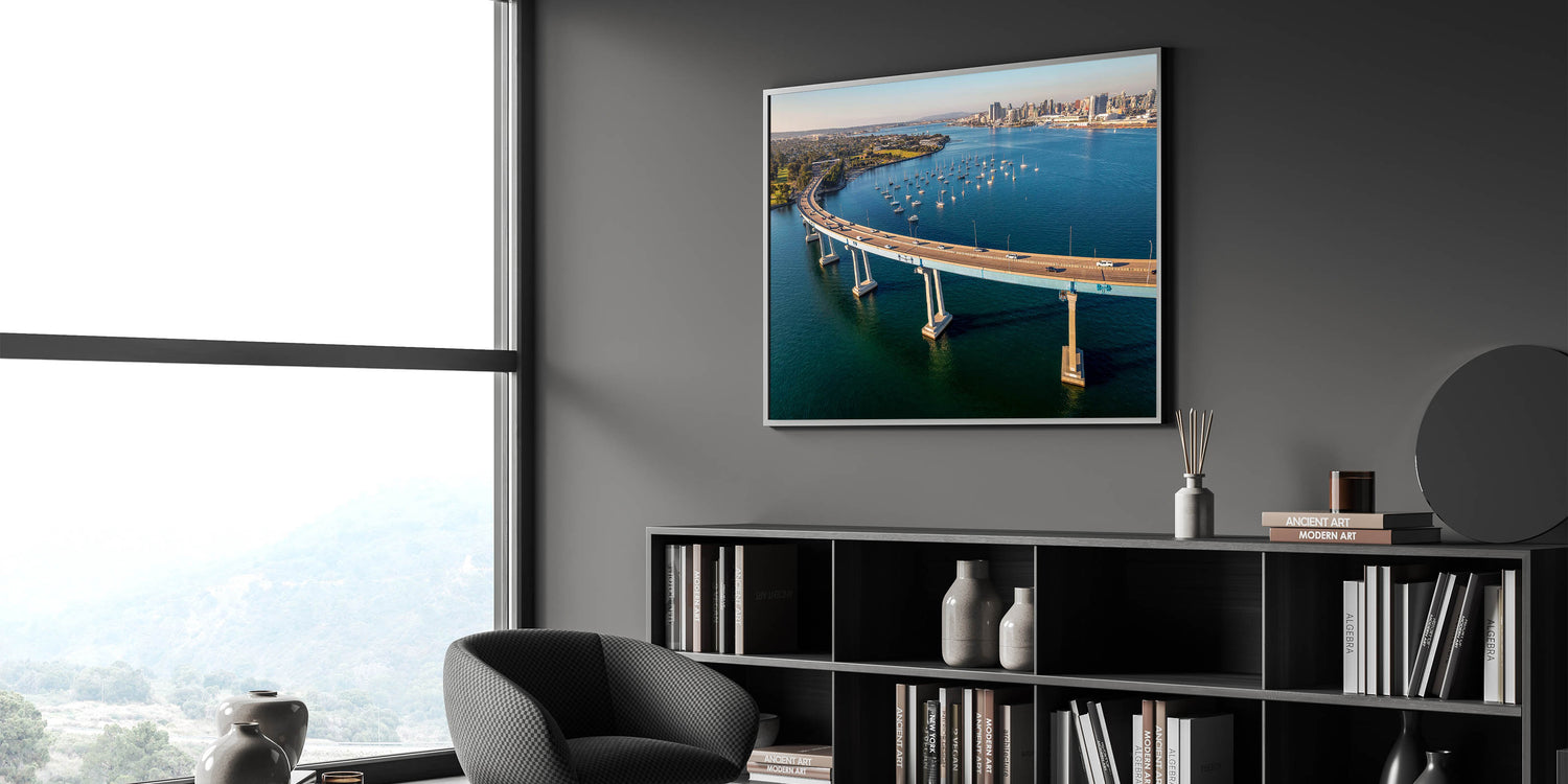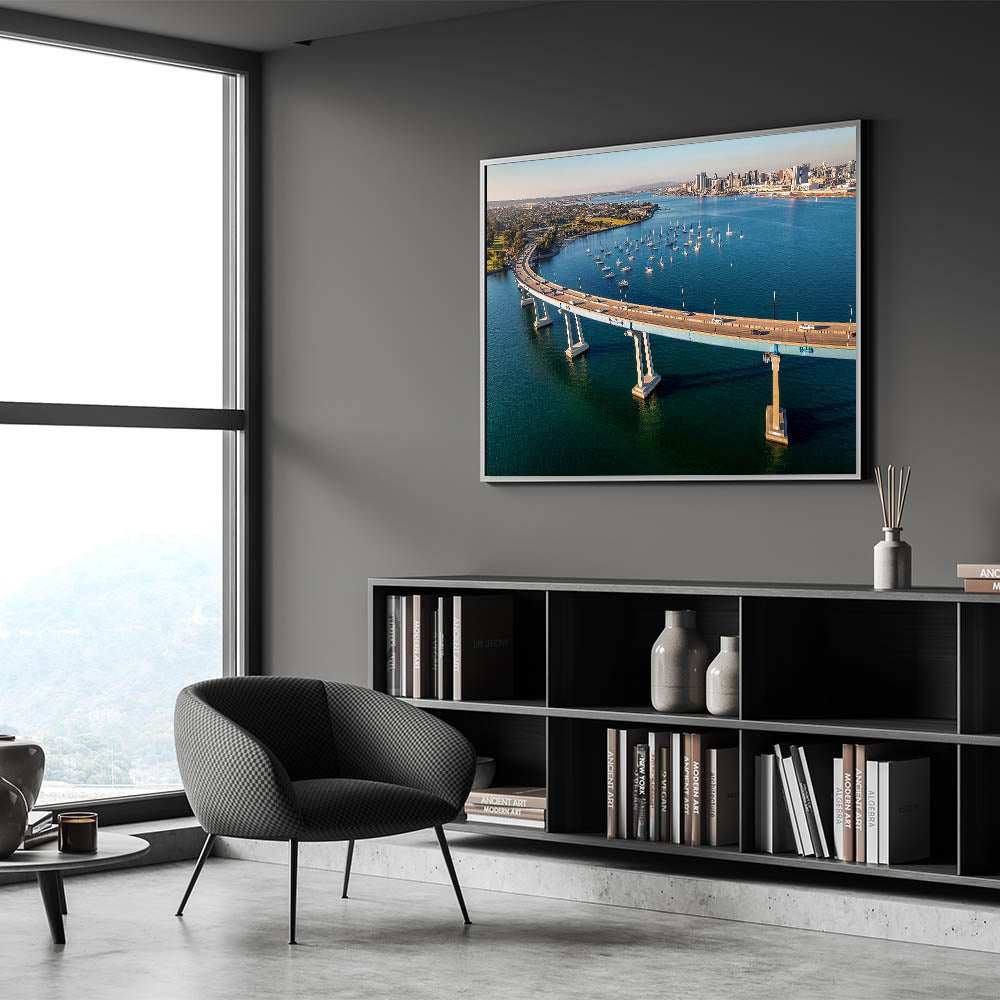 • Handcrafted aerial Coronado bridge prints made with premium materials for long-lasting quality.