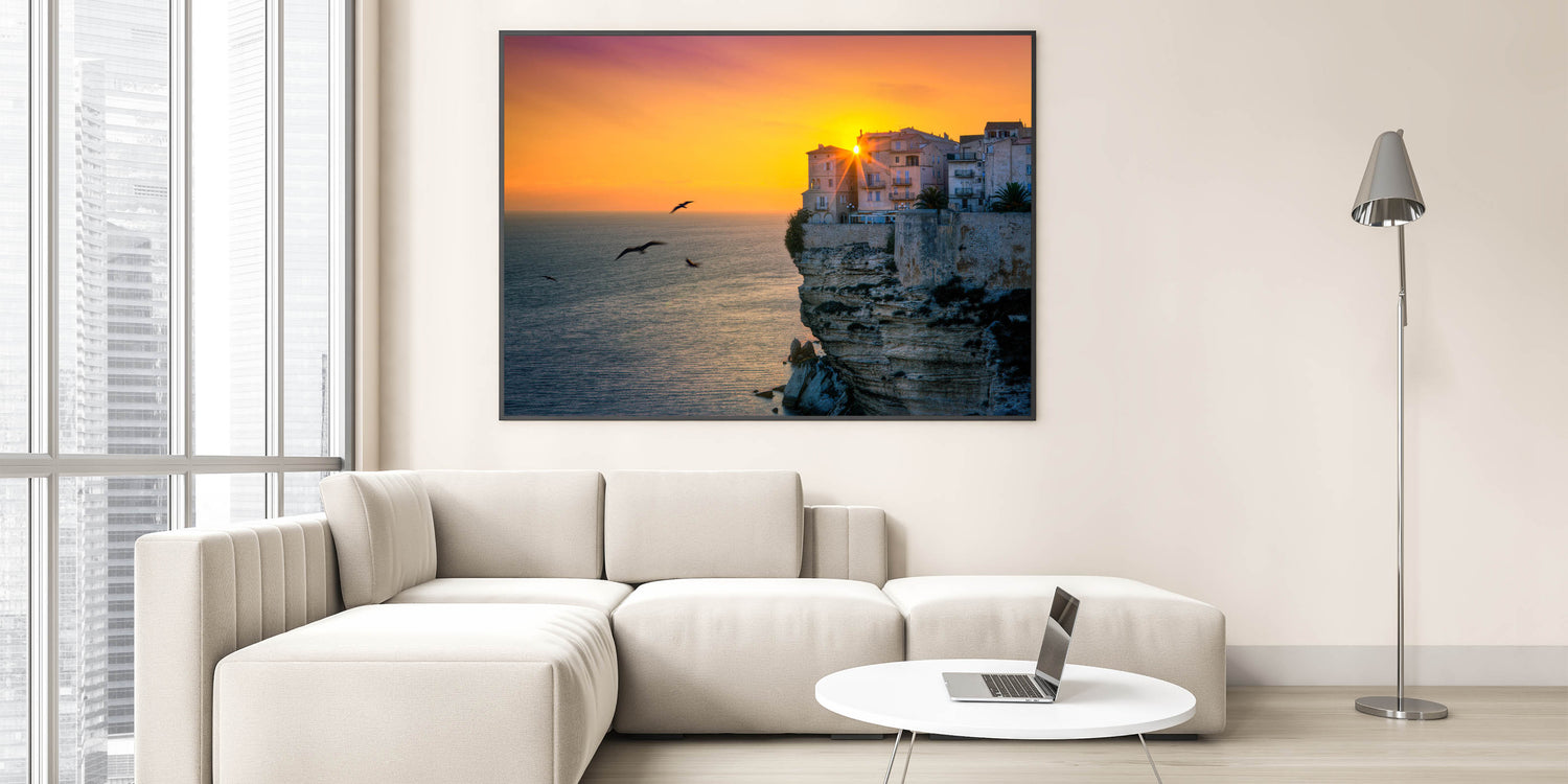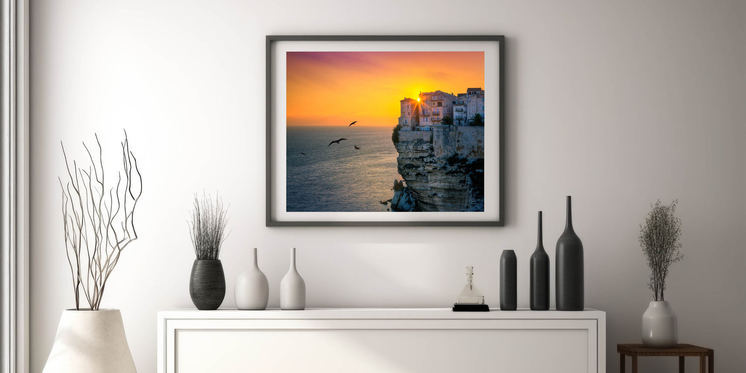 Corsica Wall Art - Stunning Sunset over Mediterranean Cliffs Scenic Print