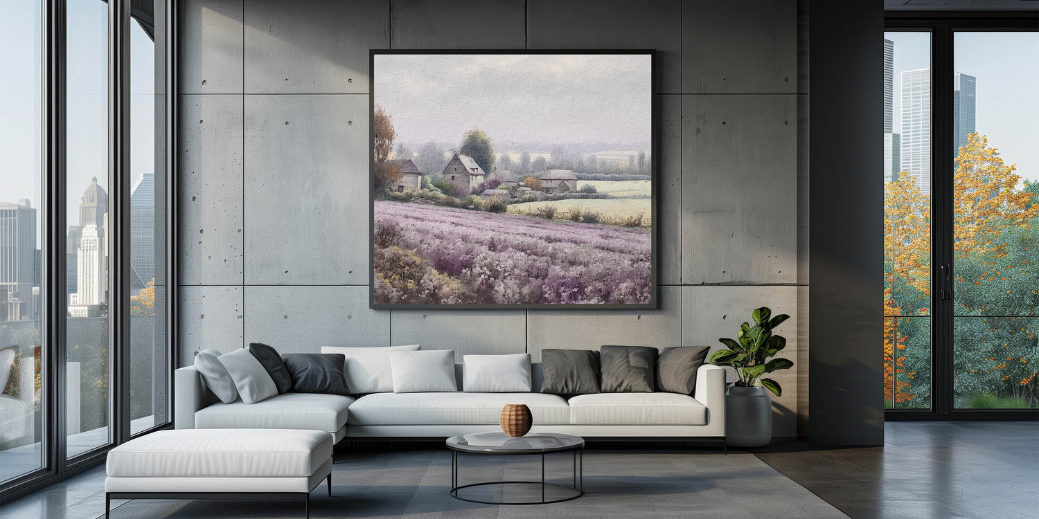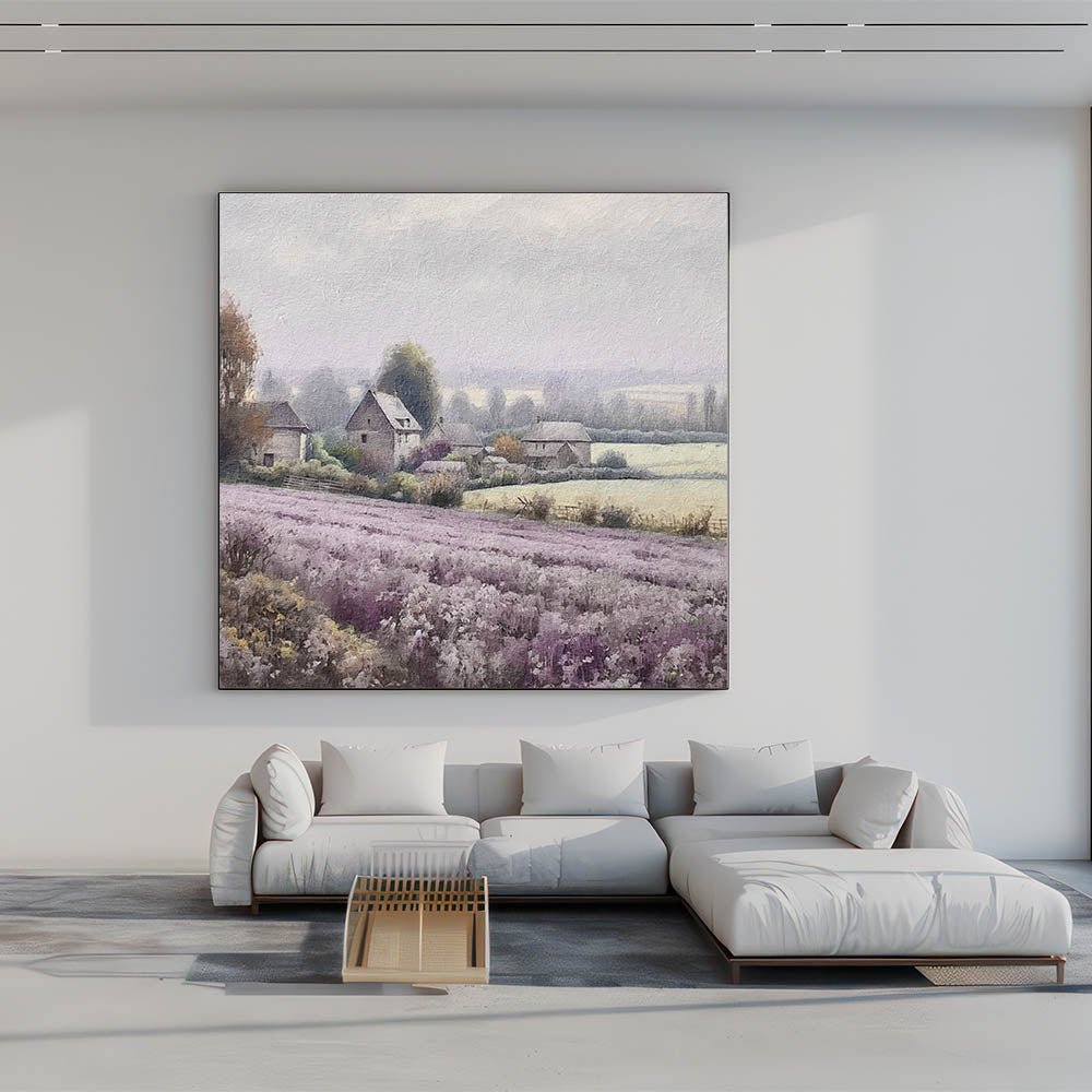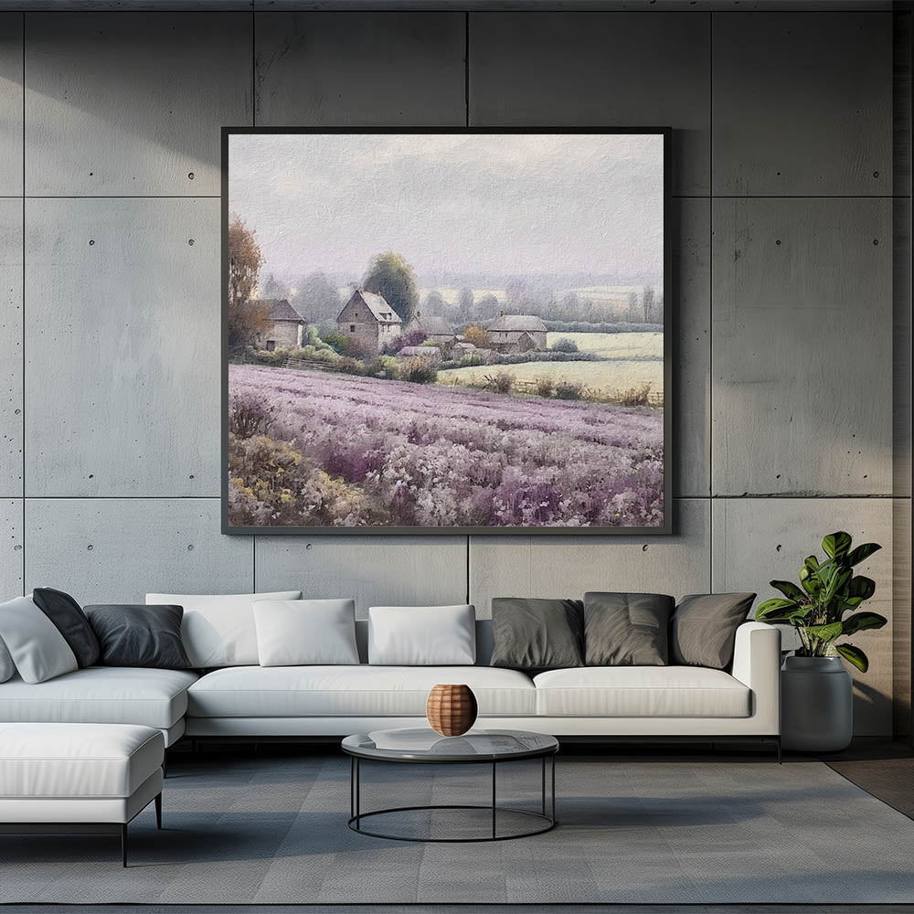 This countryside print is ideal for those who love the calming essence of lavender fields and the simplicity of rural farmhouses. Perfect for your living room, bedroom, or hallway, this piece brings a serene and cozy atmosphere to any space.