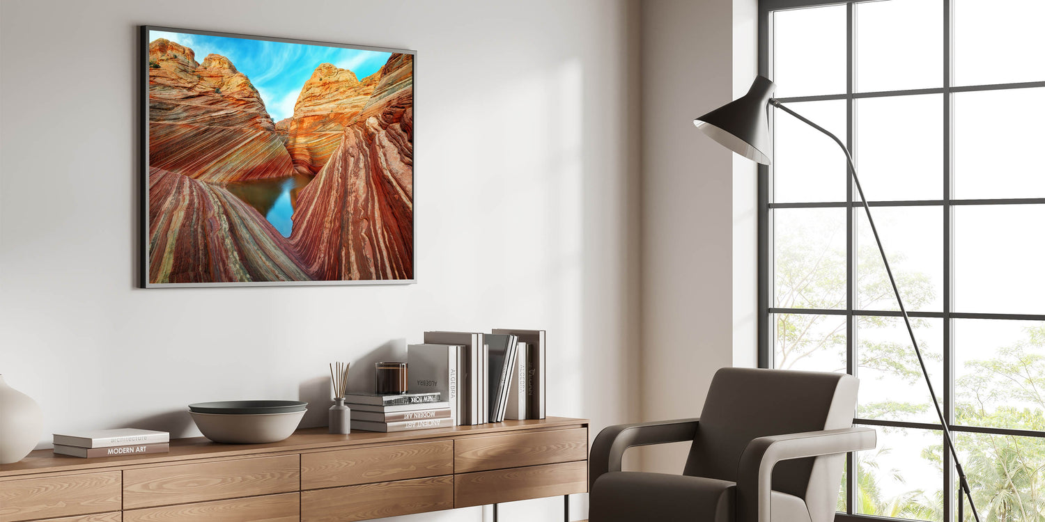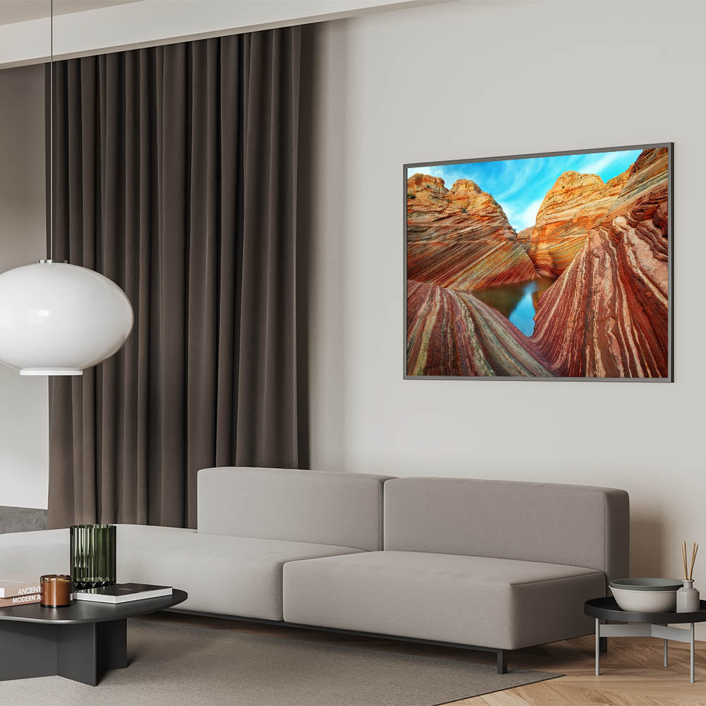 Whether you’re a nature lover or simply looking for a bold and dynamic piece of art, this Coyote Buttes wall art is ideal for enhancing your space. Its vibrant desert colors and intricate rock formations make it a captivating focal point, offering a glimpse into the wild beauty of the Arizona wilderness.