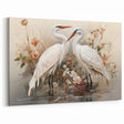 Elegant Crane Wall Art - Romantic Pair of Cranes with Floral Accents
