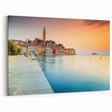 Introducing the "Croatian Landscape Art - Rovinj Waterfront Sunset Print," a breathtaking portrayal of Rovinj's vibrant waterfront as the sun sets, casting a warm glow over the historic town. This canvas print captures the essence of Croatian beauty and the tranquil ambiance of the Adriatic coast.