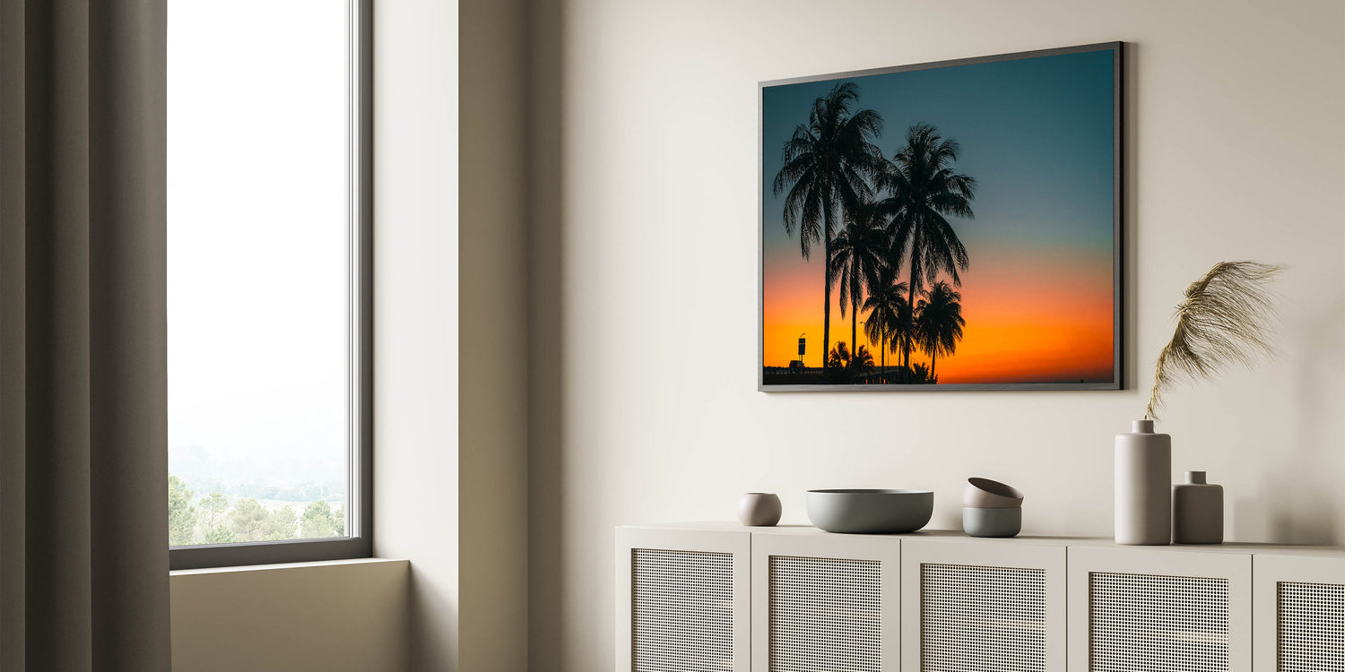 Caribbean Sunset Wall Art - Tropical Palms with Vibrant Orange Sky