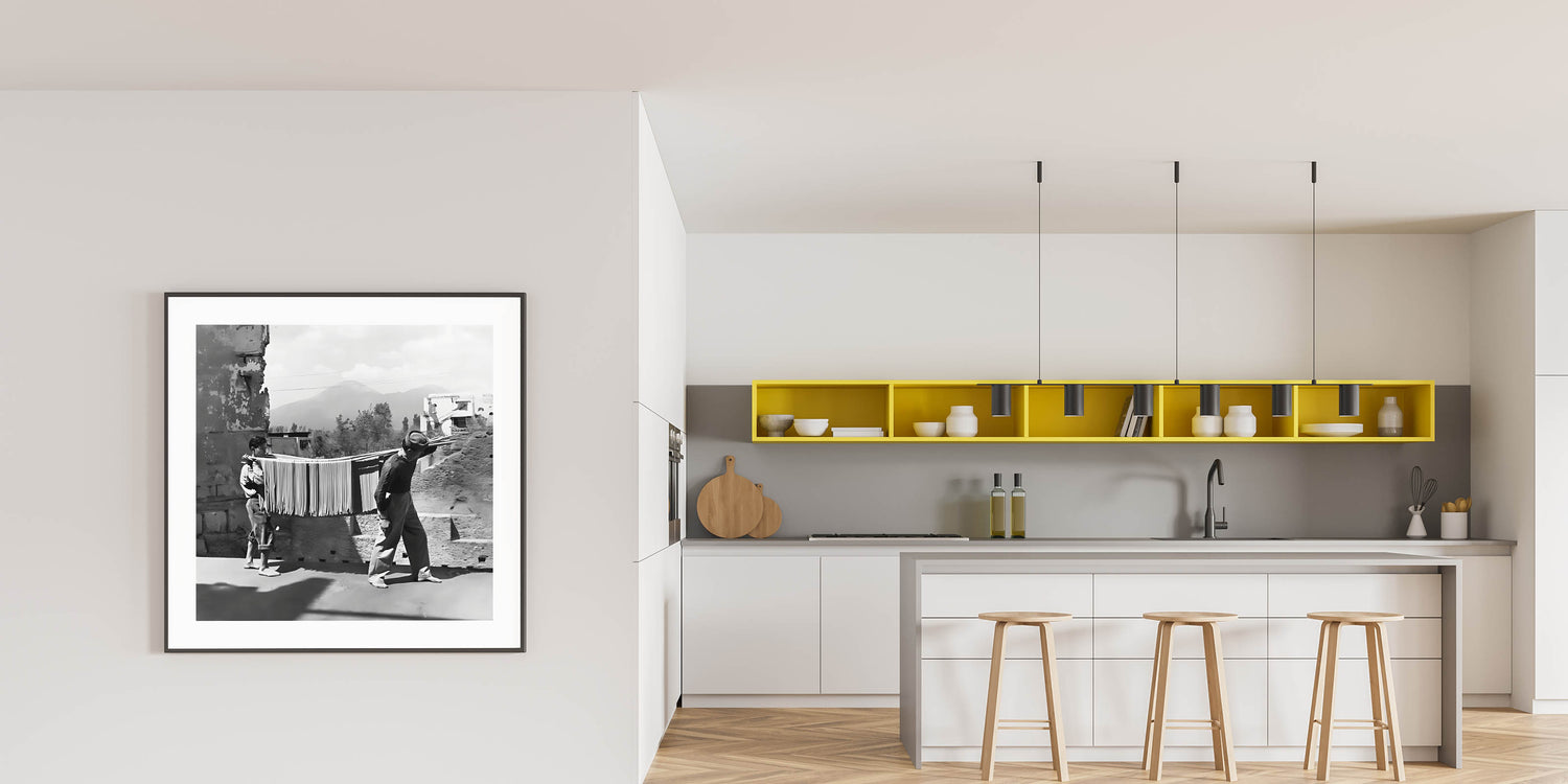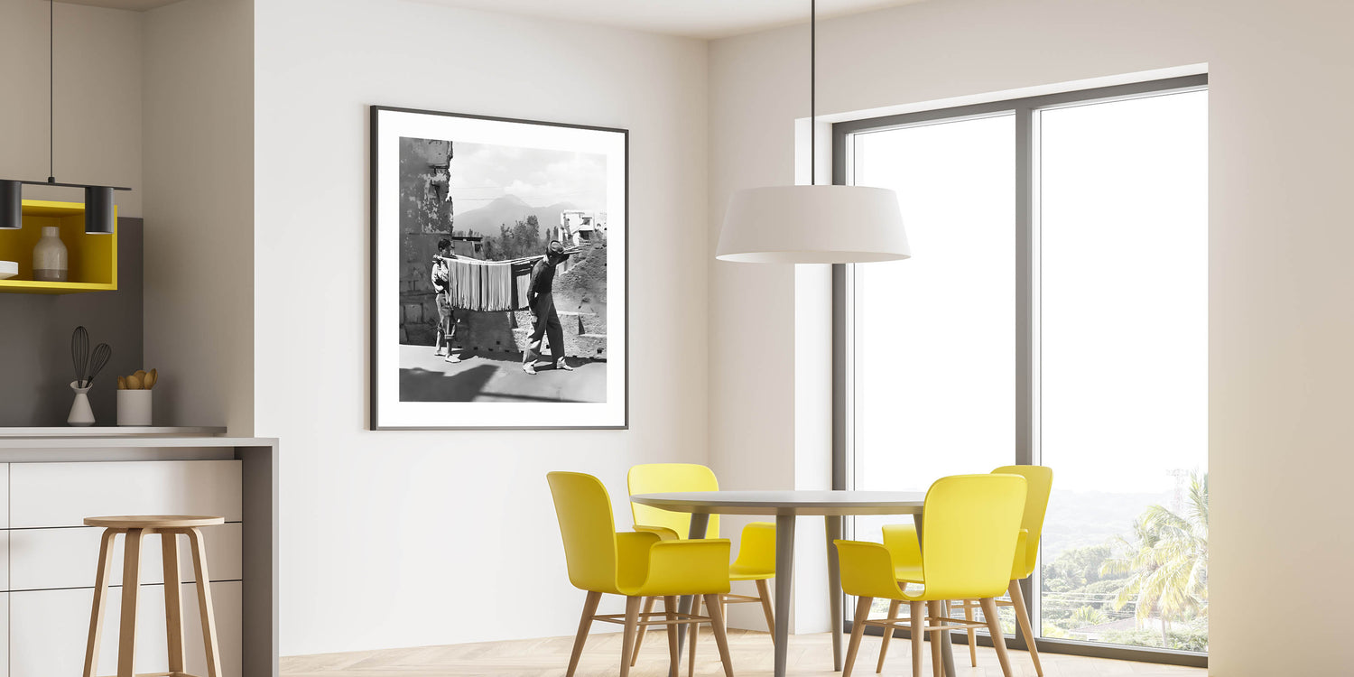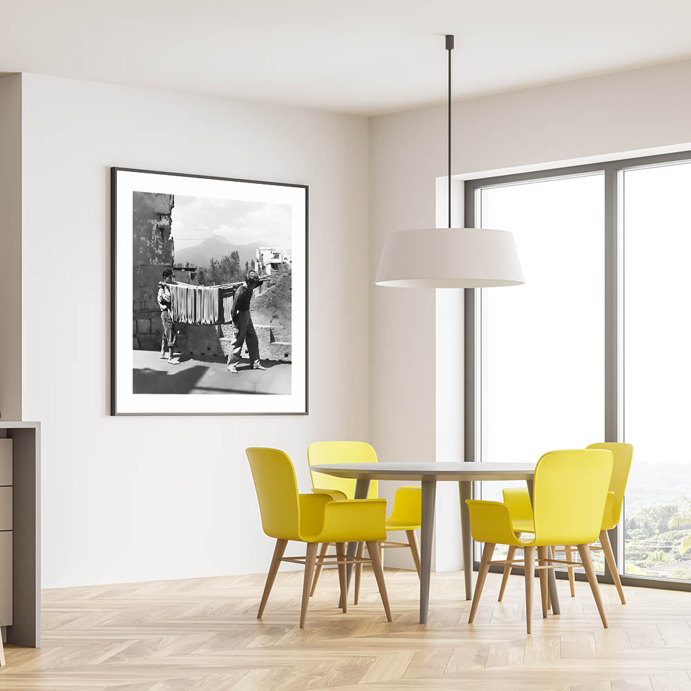 Step into the world of traditional pasta-making with this chef photography wall art, featuring artisans transporting strands of fresh pasta in a rustic, open-air setting. This culinary portrait wall art beautifully embodies the dedication and craftsmanship behind handmade cuisine, making it an excellent choice for restaurant wall art, kitchen decor, or gourmet-themed spaces.
