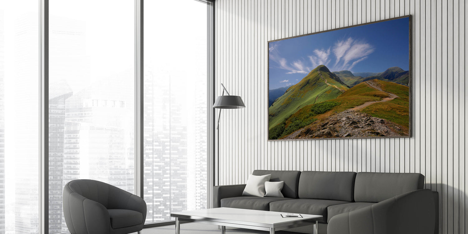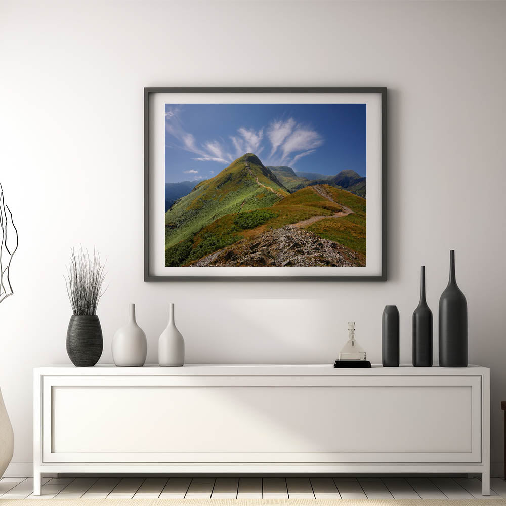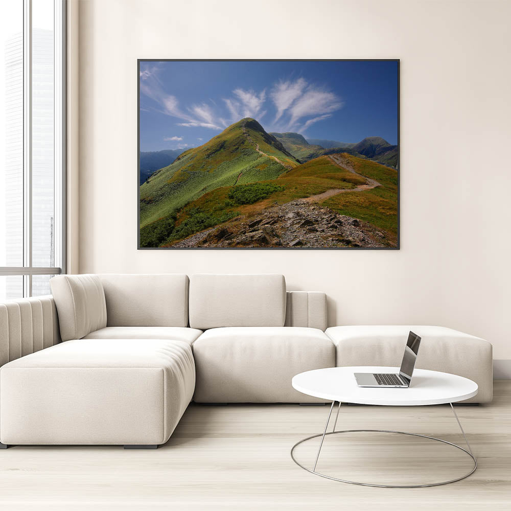 Immerse yourself in the breathtaking beauty of Cumbria with this striking wall art showcasing a scenic mountain path under a bright blue sky. Part of our Cumbria Scenery By Region Collection, this piece captures the essence of the Lake District's rolling hills and serene, unspoiled landscapes. Whether you choose canvas, framed prints, or acrylic glass, this artwork is a perfect addition to your home decor, evoking the natural beauty of England’s countryside.