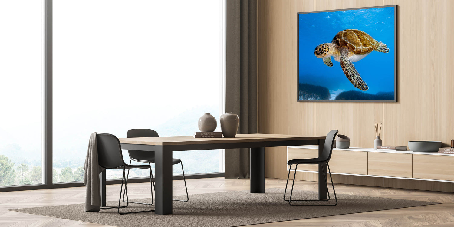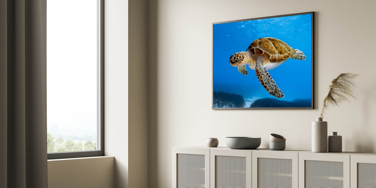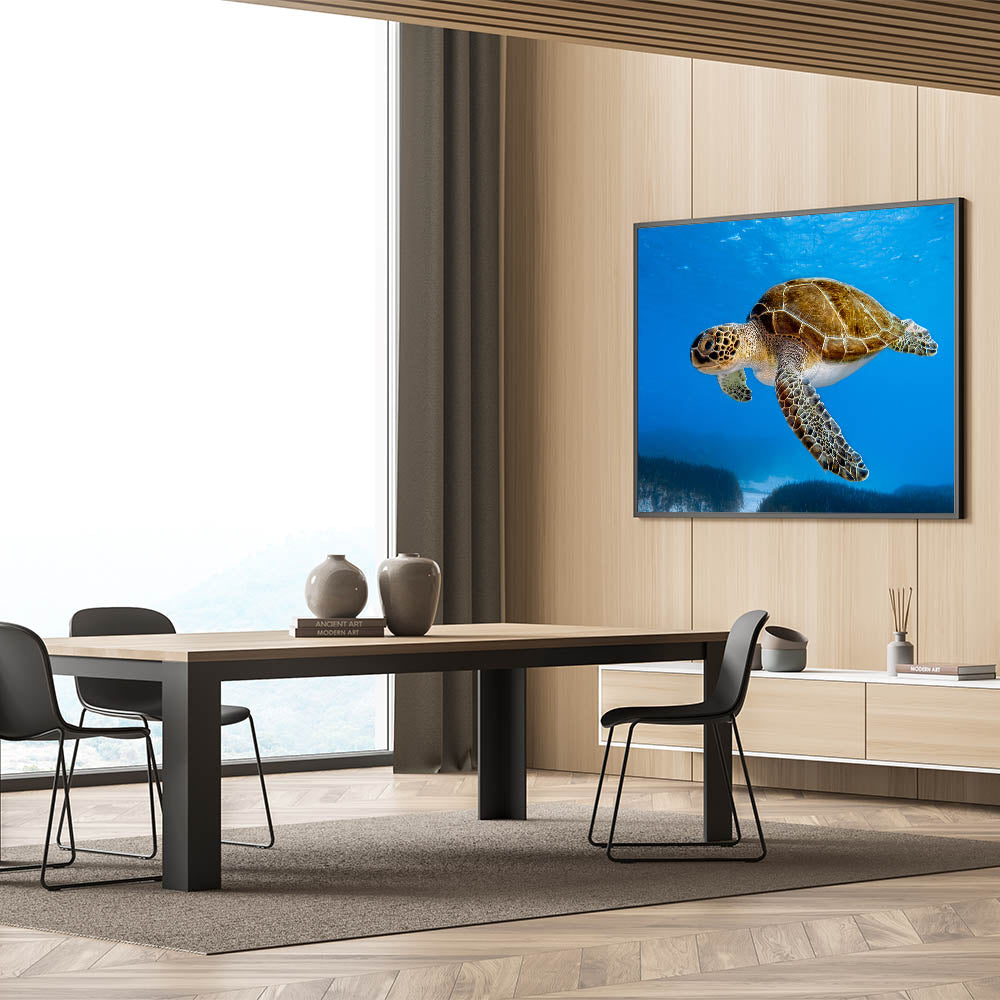 This beautiful art piece is ideal for adding a calming and refreshing atmosphere to any room. Whether displayed in a living room, bedroom, or office, this vibrant turtle photography brings a touch of nature's elegance to your space, making it a perfect choice for lovers of scenic Cyprus prints.