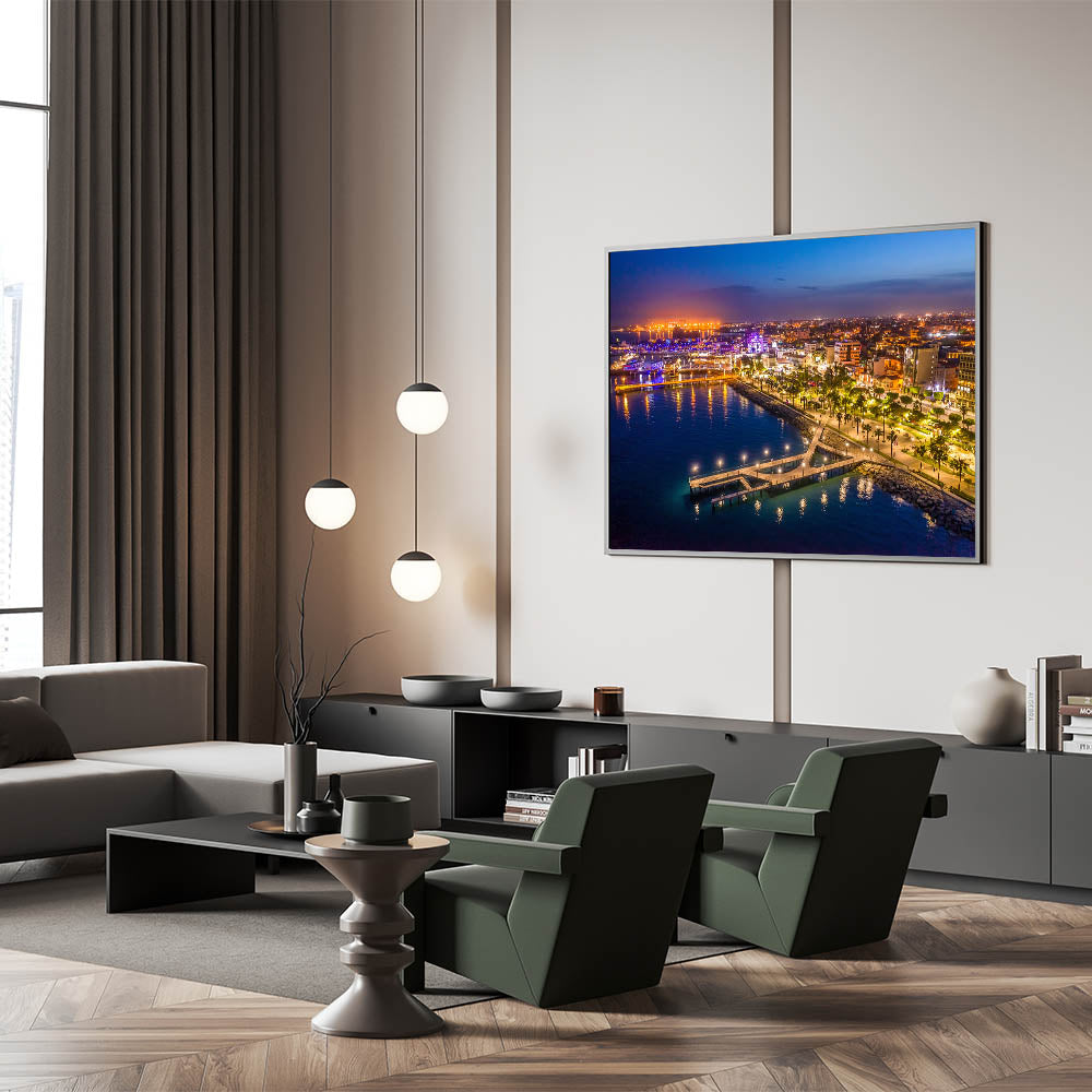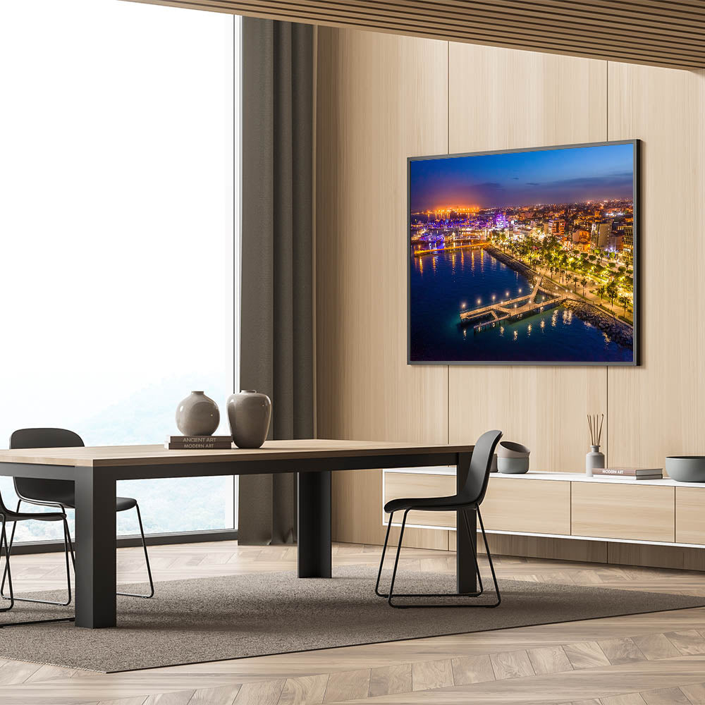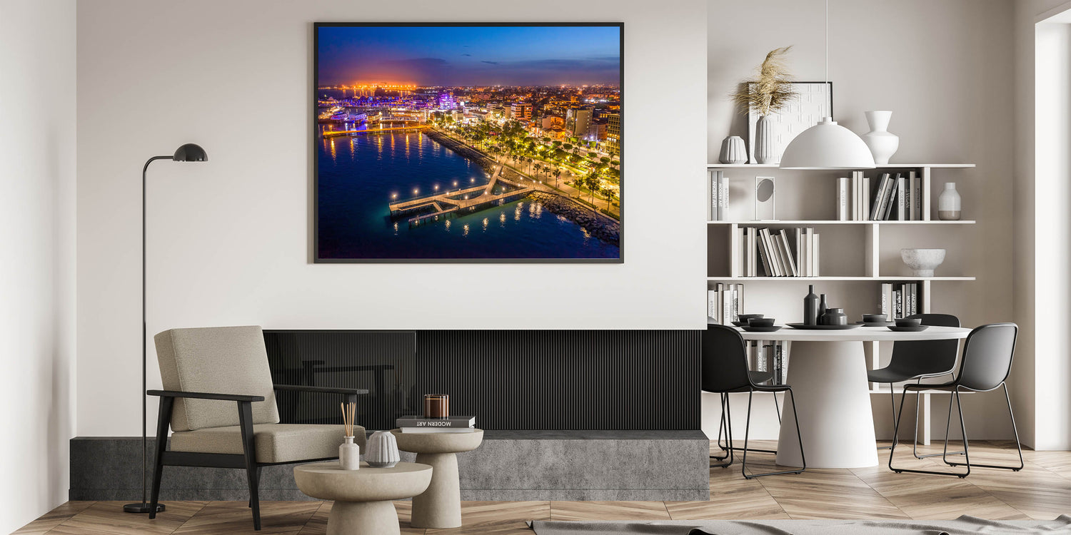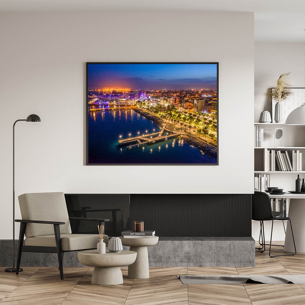 Ideal for those who love urban photography and Mediterranean nightscapes, this piece adds a sophisticated touch to any room. It’s perfect for an office, living room, or as a standout piece in a hallway, inviting viewers to experience the allure of Cyprus after dark.