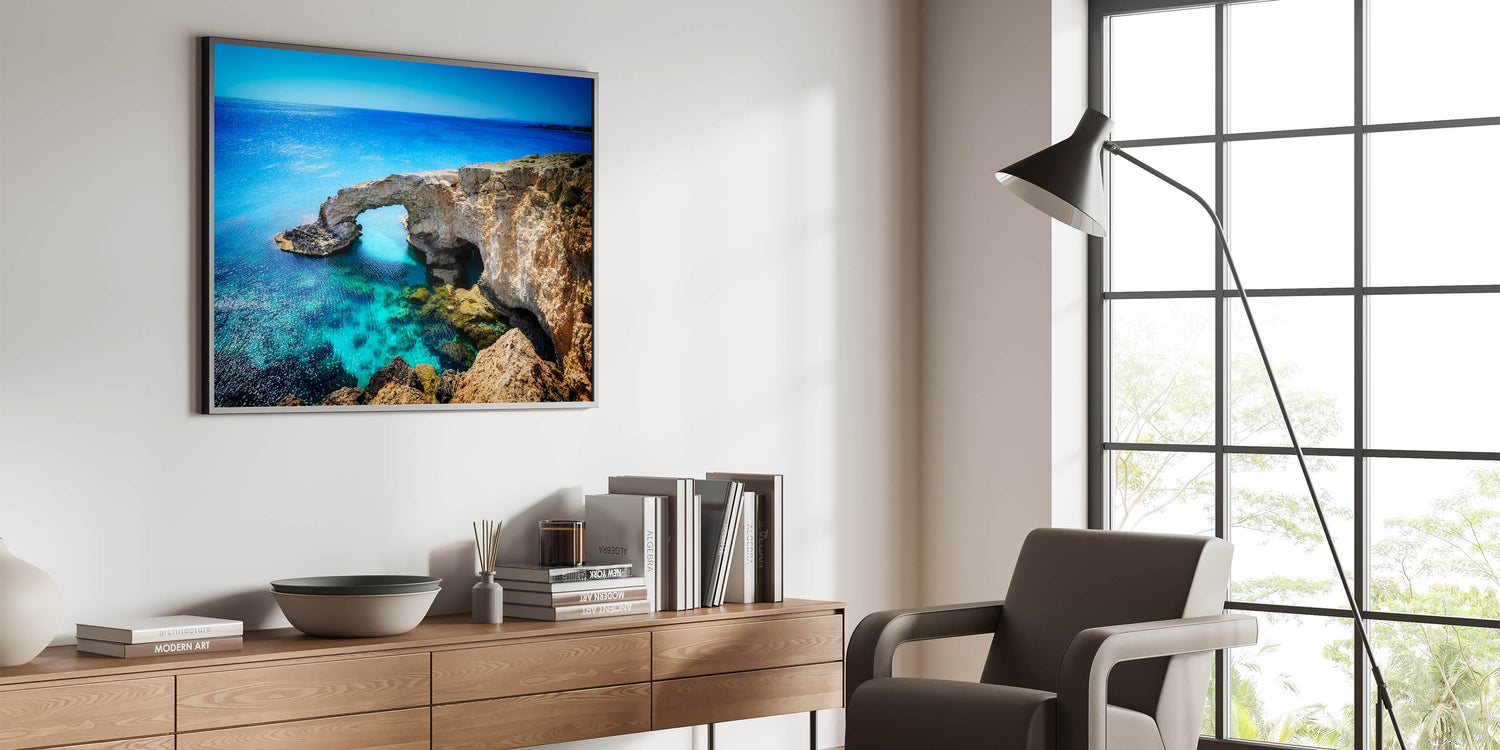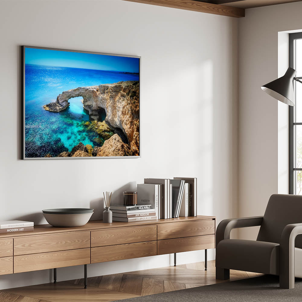 Immerse yourself in the stunning beauty of Cyprus with our "Spectacular Sea Arch Vista" canvas art. This piece is a highlight of our Cyprus Scenery By Region collection, offering a breathtaking view of a renowned sea arch against the backdrop of the azure Mediterranean Sea.