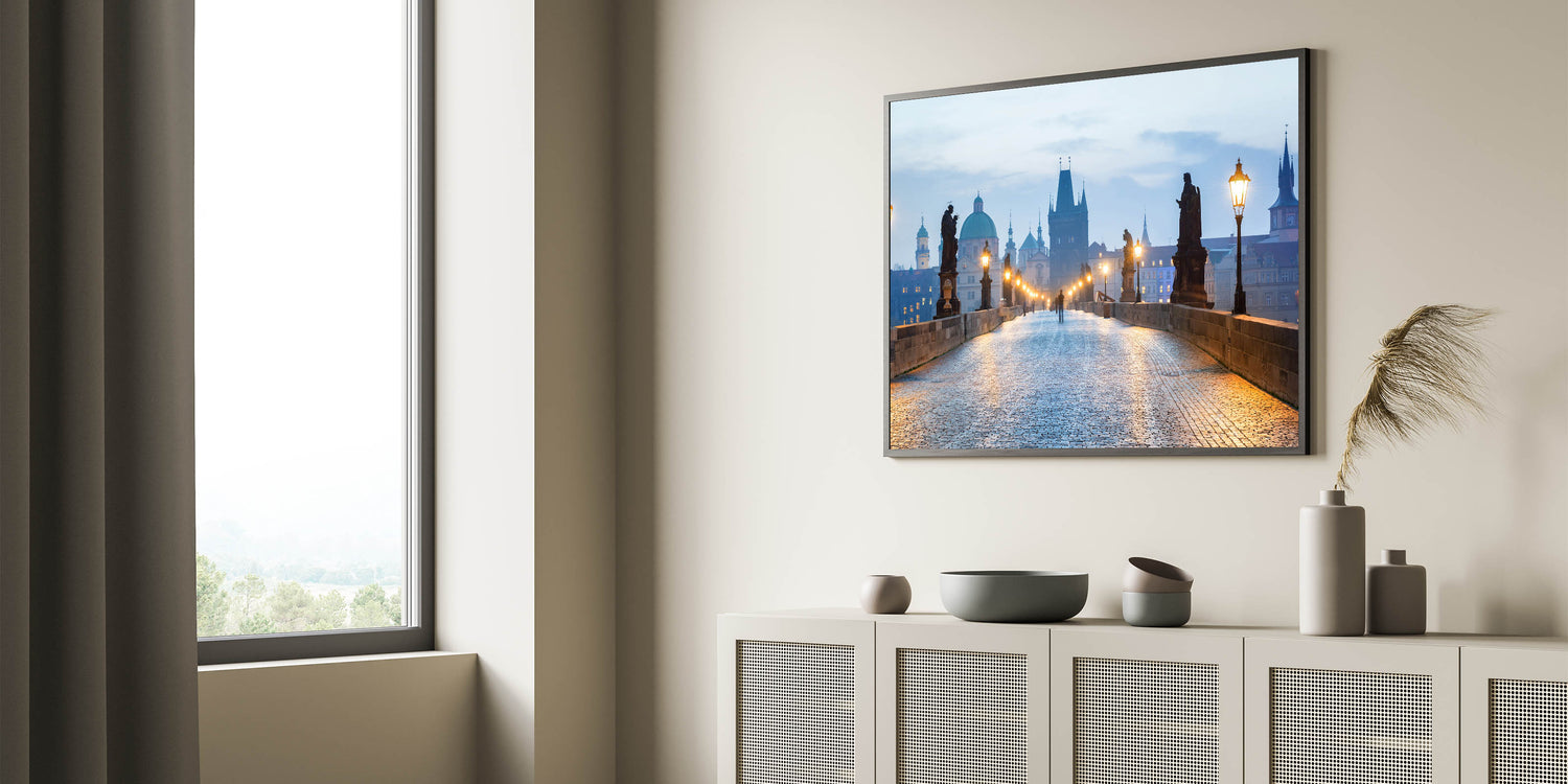 • High-quality Czech Republic scenic prints featuring Charles Bridge at dawn
