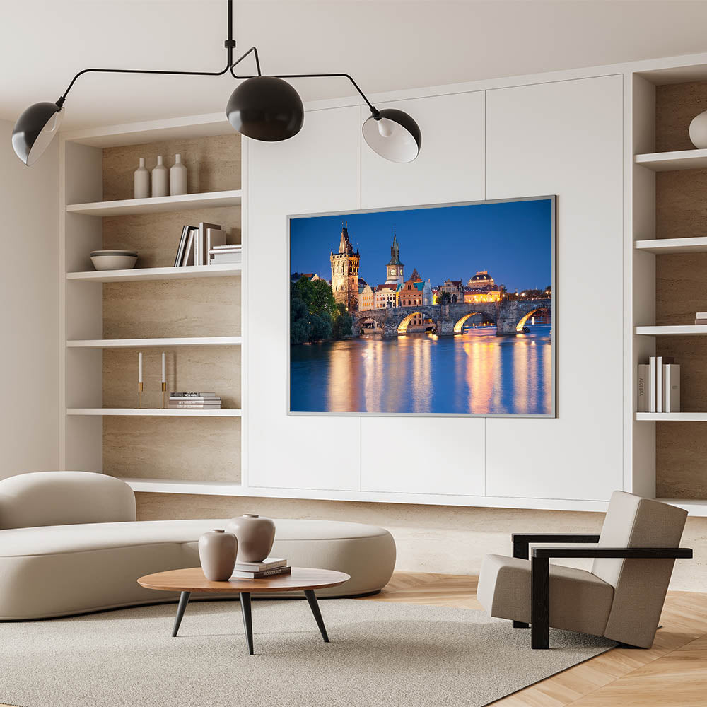 - Available in stretched canvas, framed canvas, and acrylic glass formats