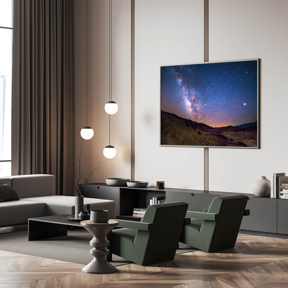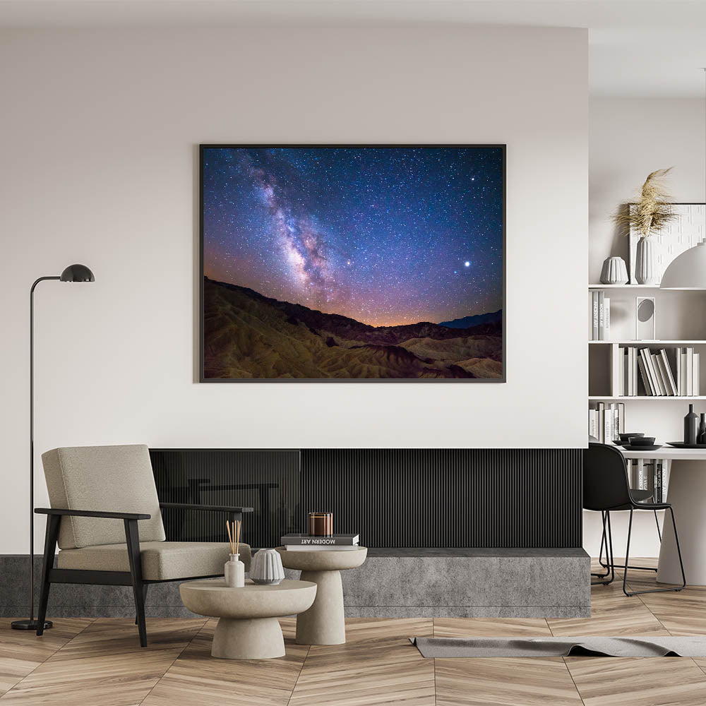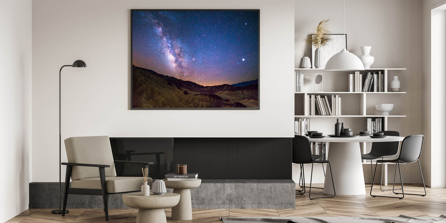- High-resolution photography art featuring the Milky Way over Death Valley