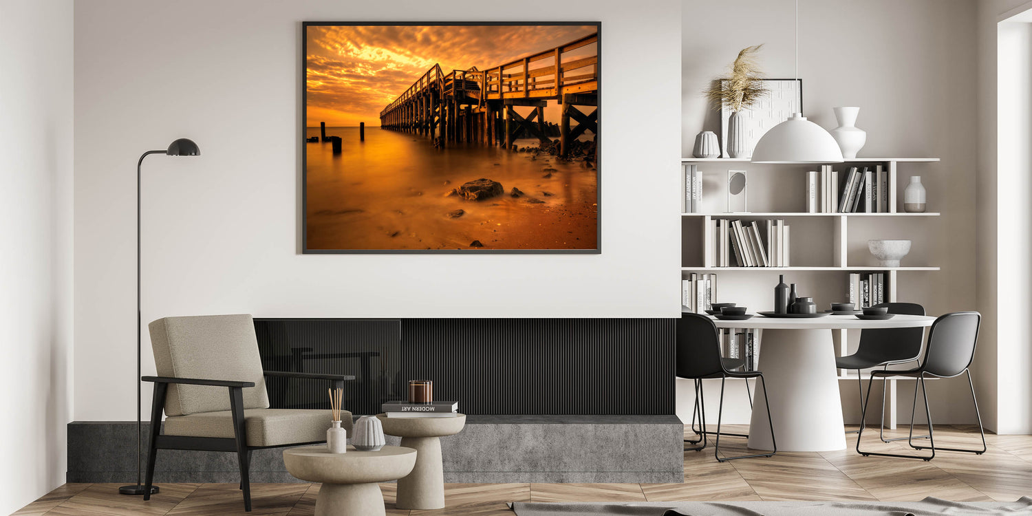 - High-Quality Delaware Wall Prints: Vivid, detailed printing ensures that the sunset's glow and the pier’s textures are captured perfectly.
