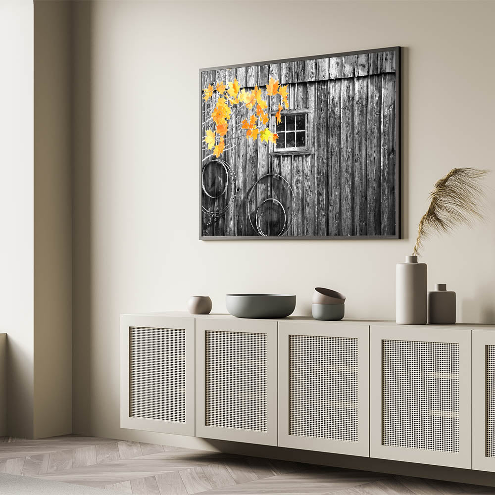 Capture the beauty of Delaware's countryside with this stunning wall art, featuring vibrant autumn leaves against a rustic barn. Part of our Scenic Delaware Prints collection, this piece showcases the warm tones of fall, bringing the essence of Delaware's rural charm into your home. Perfect for those who appreciate Delaware nature photography and the tranquil beauty of autumn.