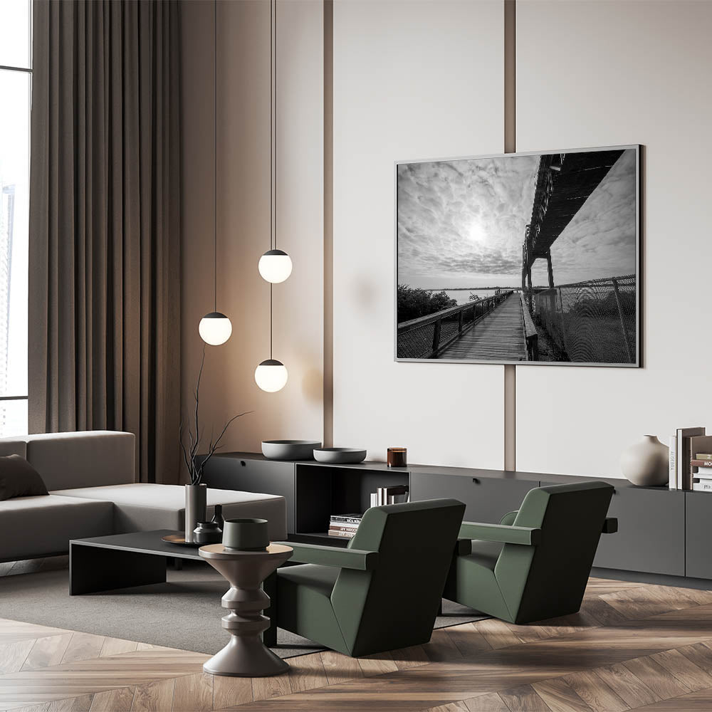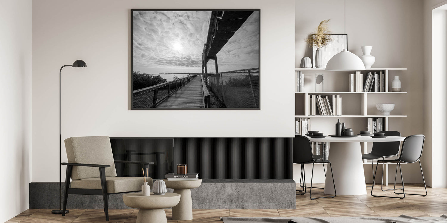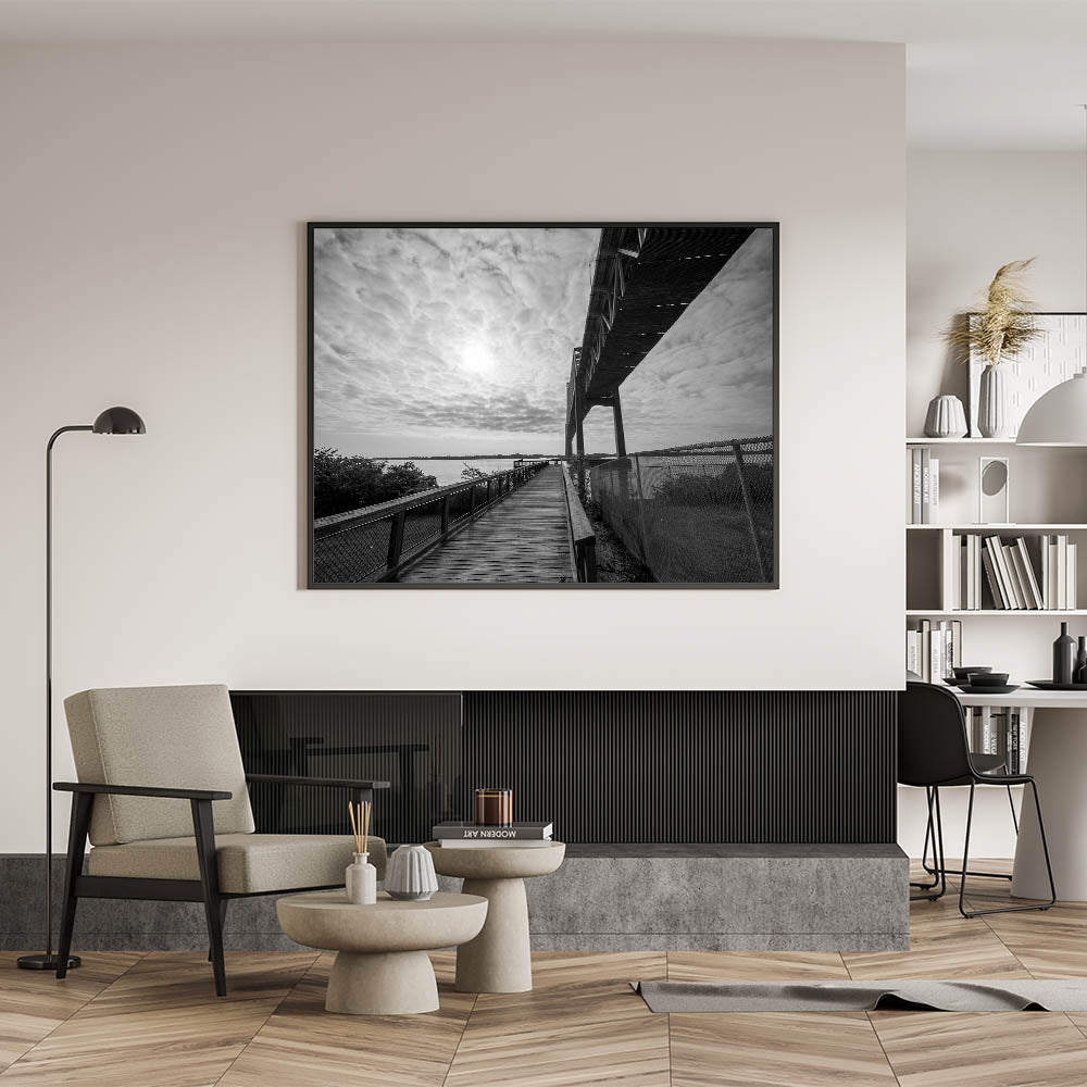 - Beautiful Delaware Scenery: A dramatic black and white capture of a bridge and path leading to the waterfront, perfect for modern and minimalist interiors.