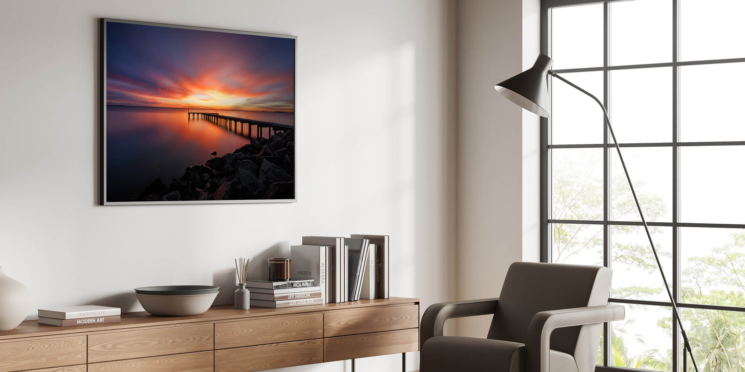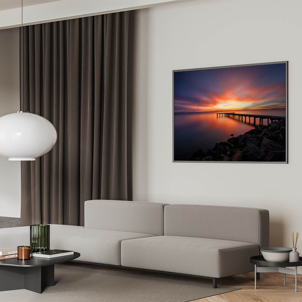 - Framed Delaware Wall Art: Custom framing options available to enhance this stunning Delaware sunset photography.