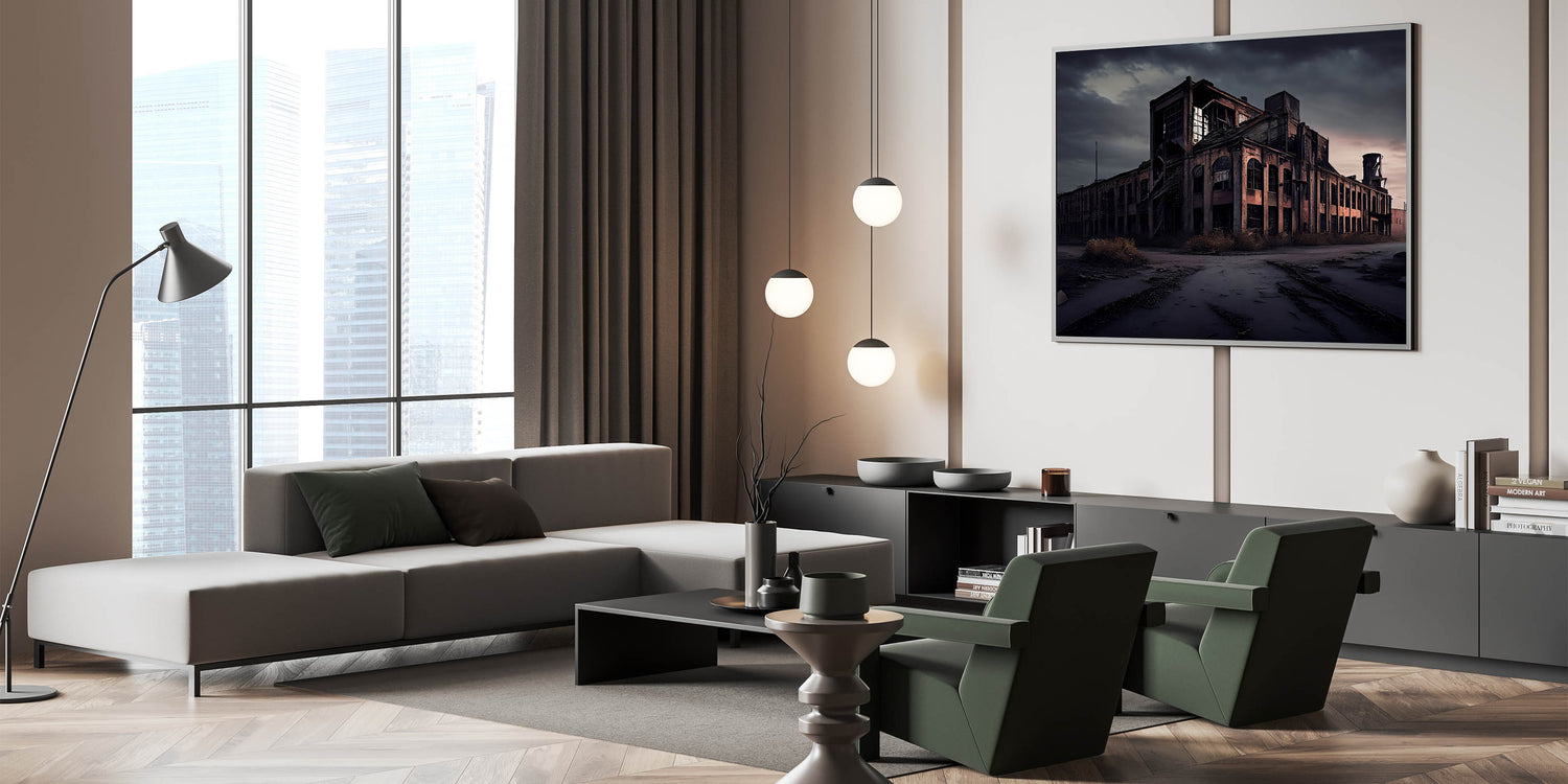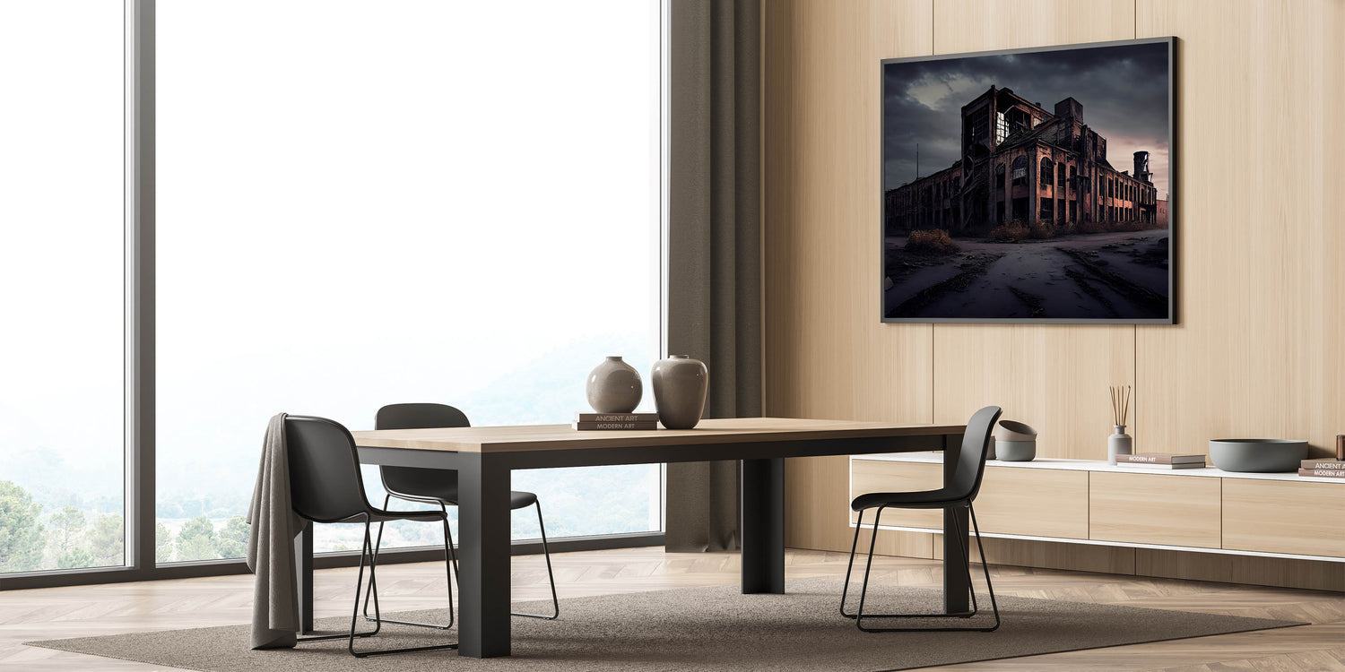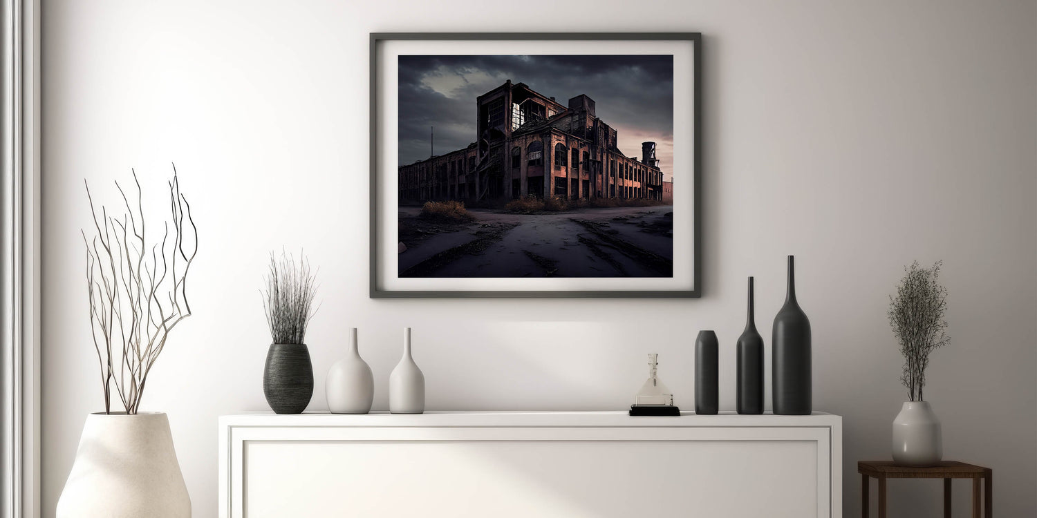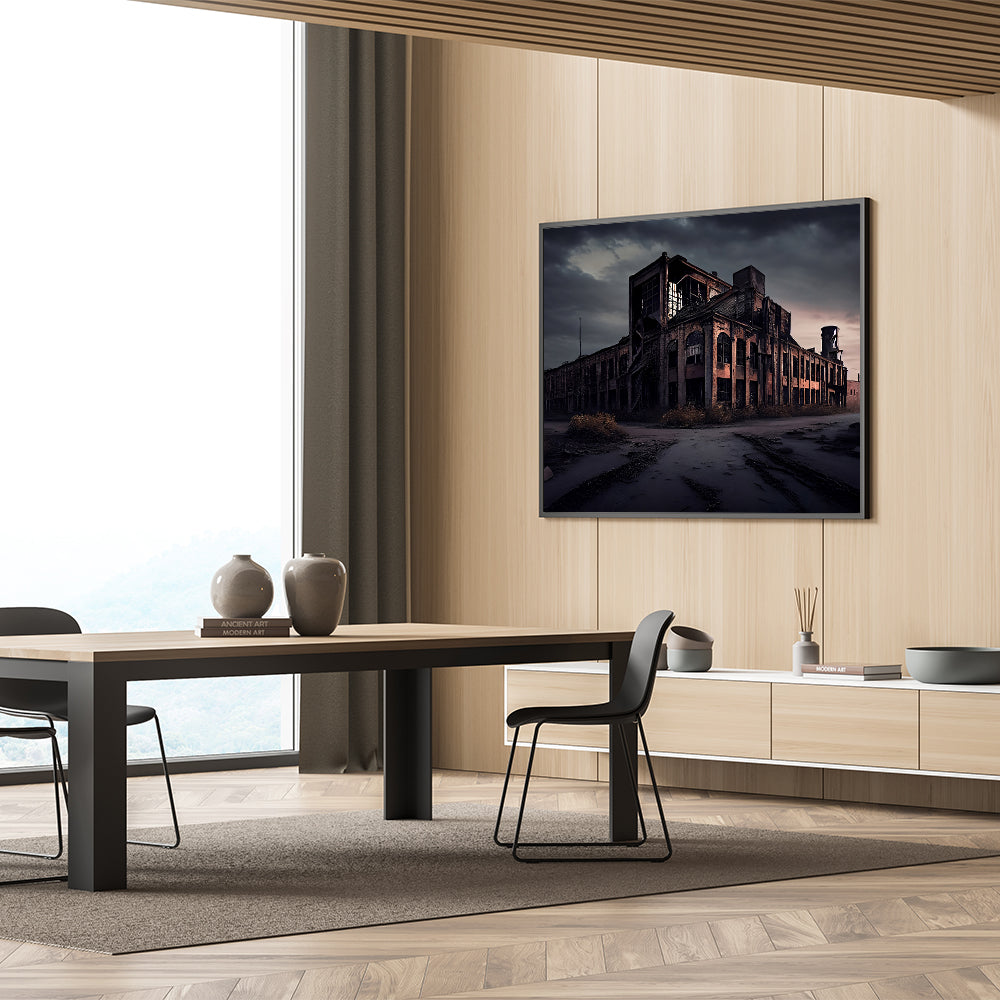 This derelict architecture art piece brings a touch of mystery and history to any room, making it perfect for fans of urban exploration and industrial aesthetics. Whether for your home or office, this artwork is sure to inspire intrigue and conversation.