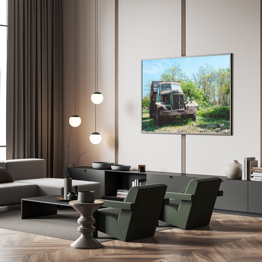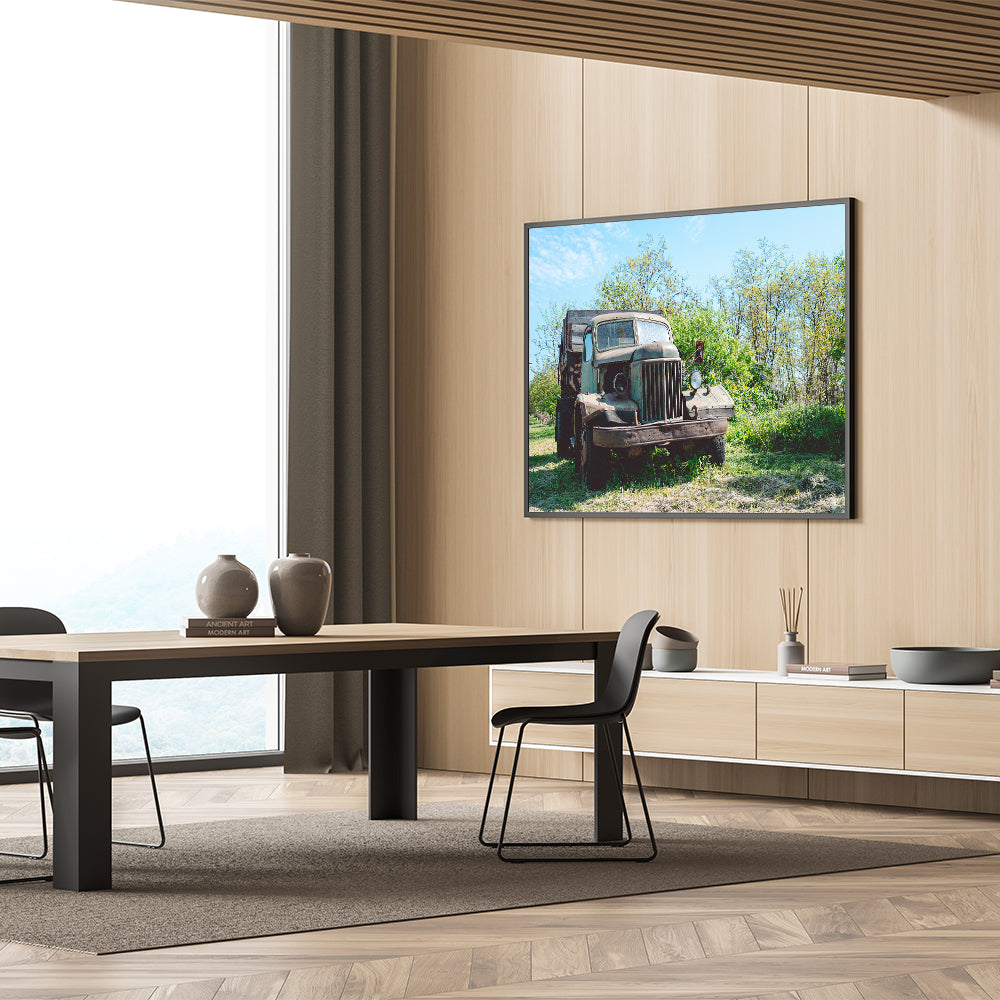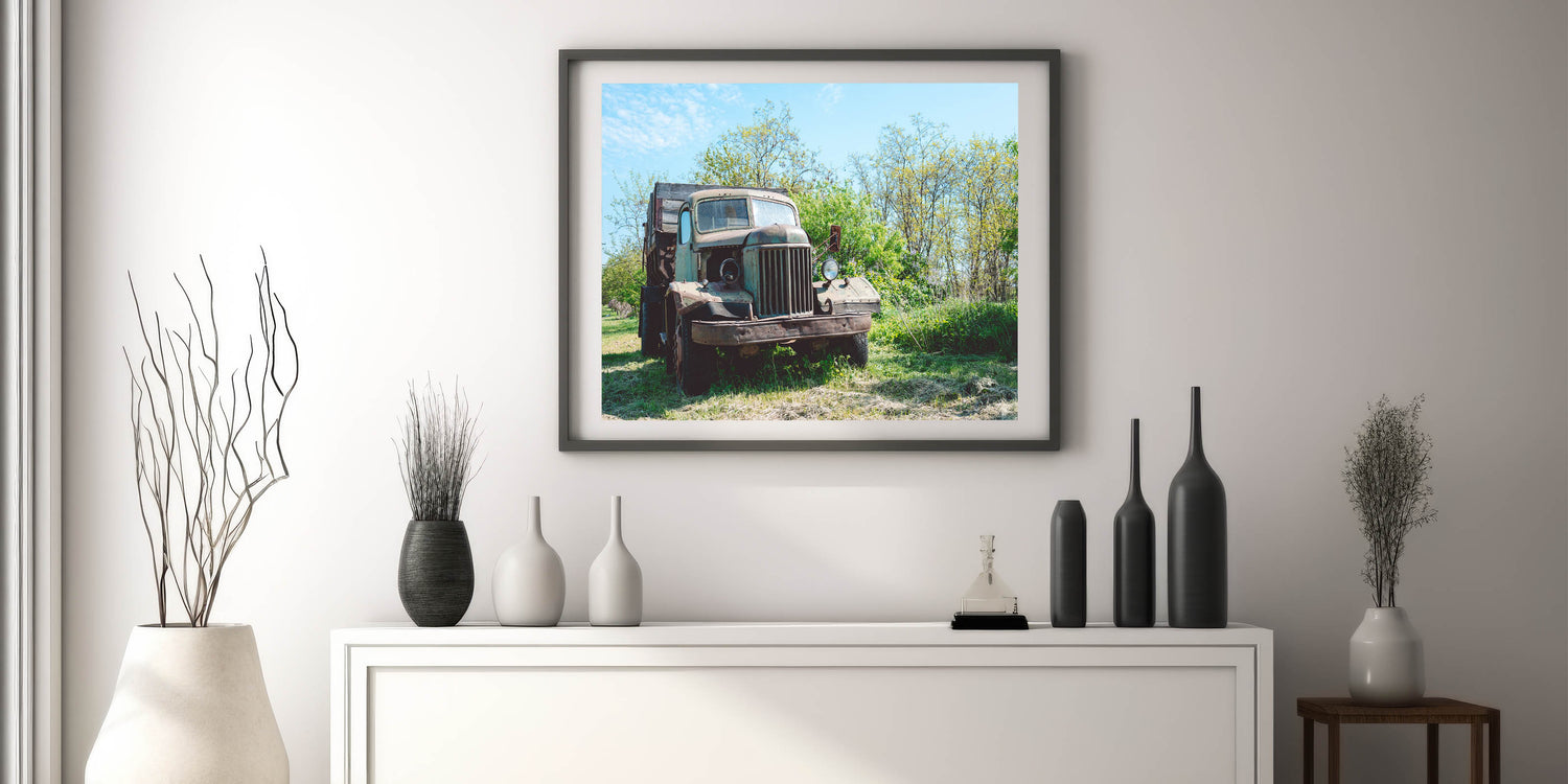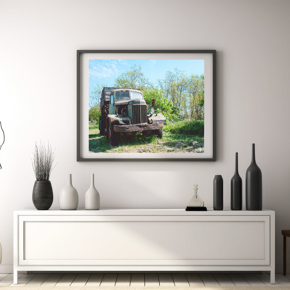 Bring the rugged charm of forgotten eras into your living space with this dereliction wall art, featuring a vintage, abandoned truck set against a backdrop of nature's reclamation. This piece perfectly captures the essence of urban decay, blending the history of bygone days with the beauty of natural growth. Ideal for those who appreciate the juxtaposition of man-made and natural elements, this artwork is a powerful reminder of the passage of time.