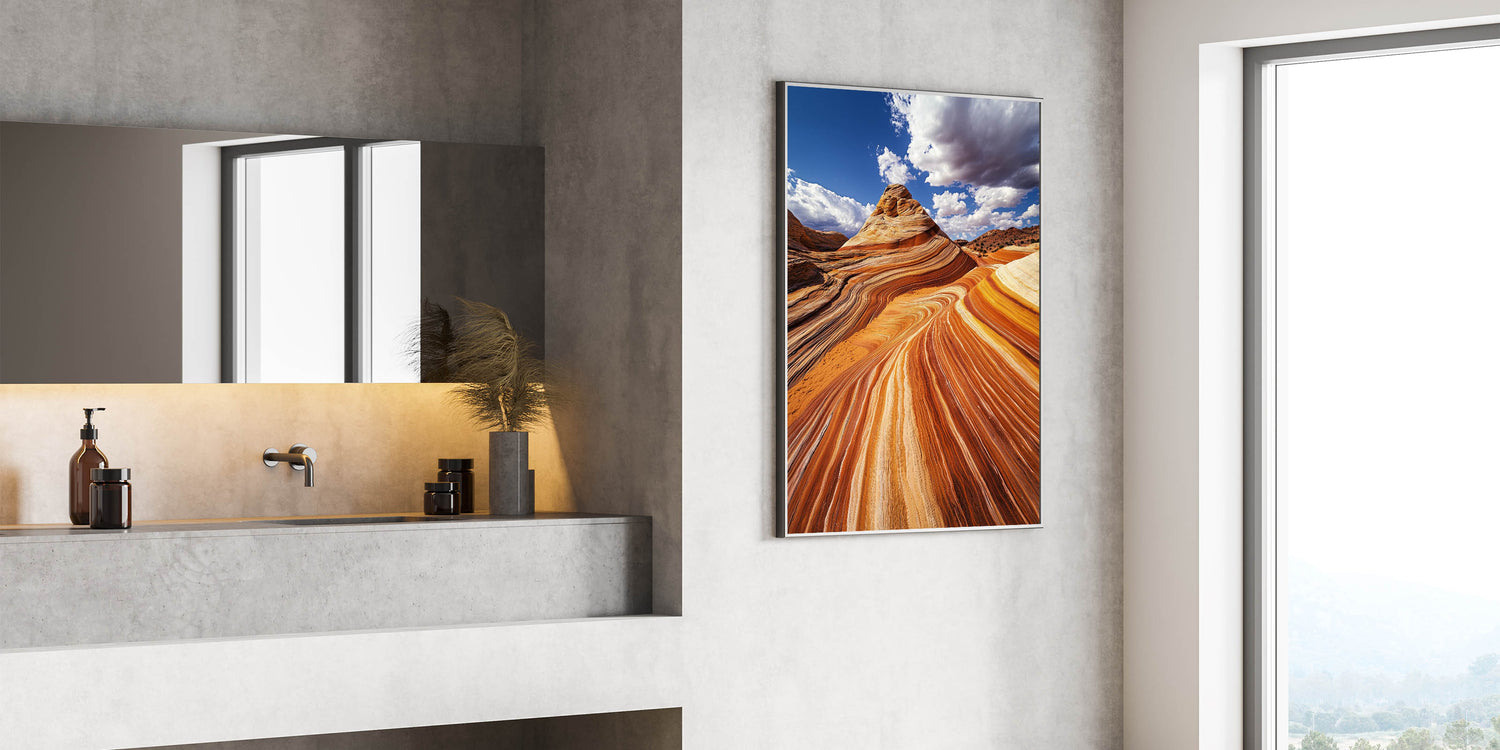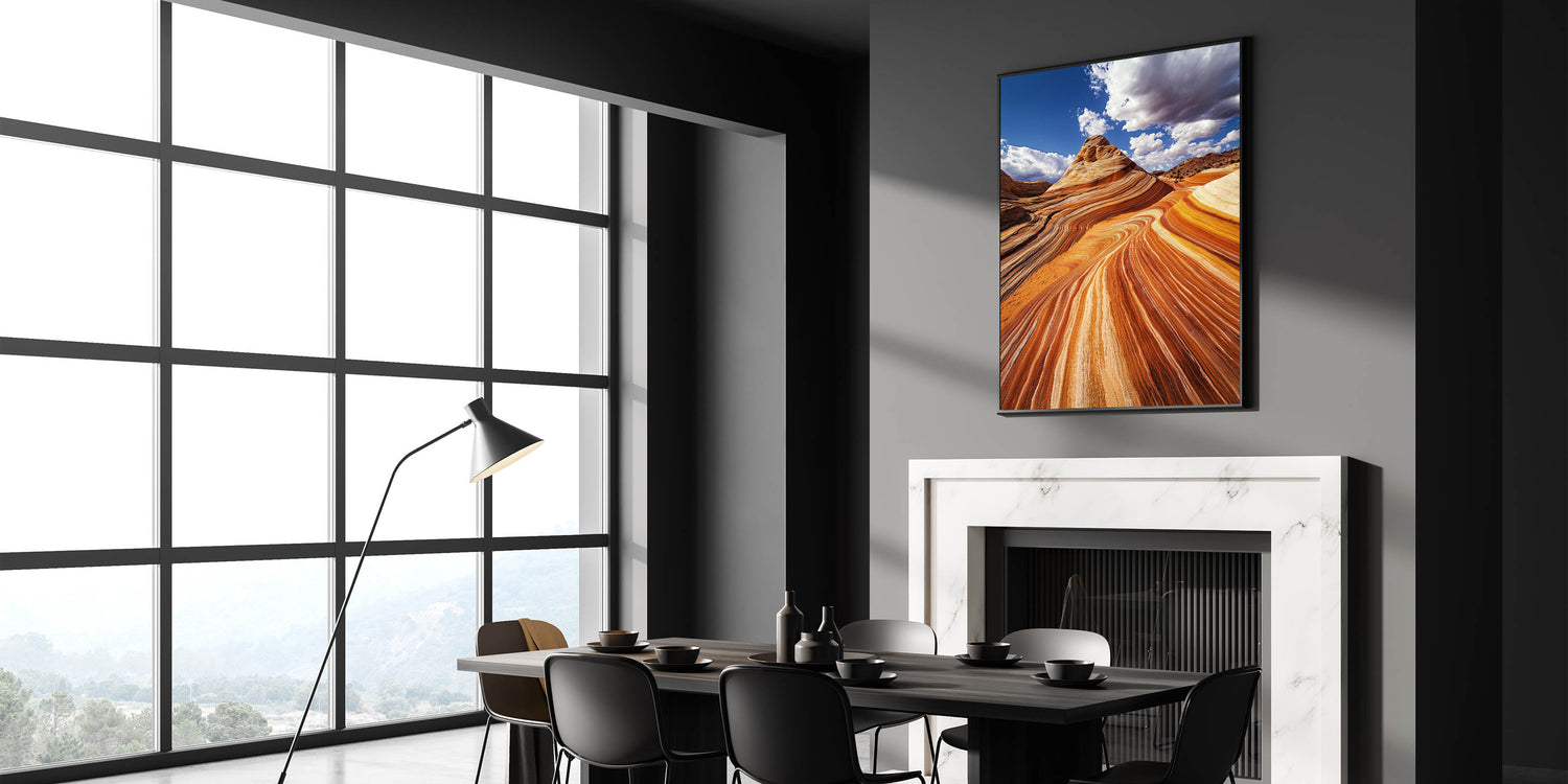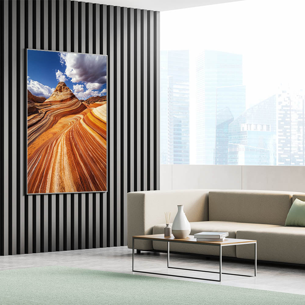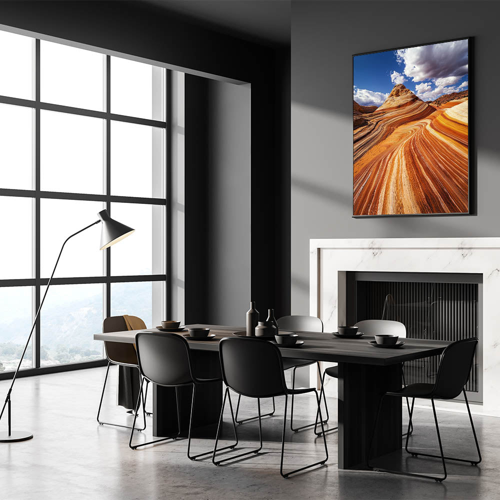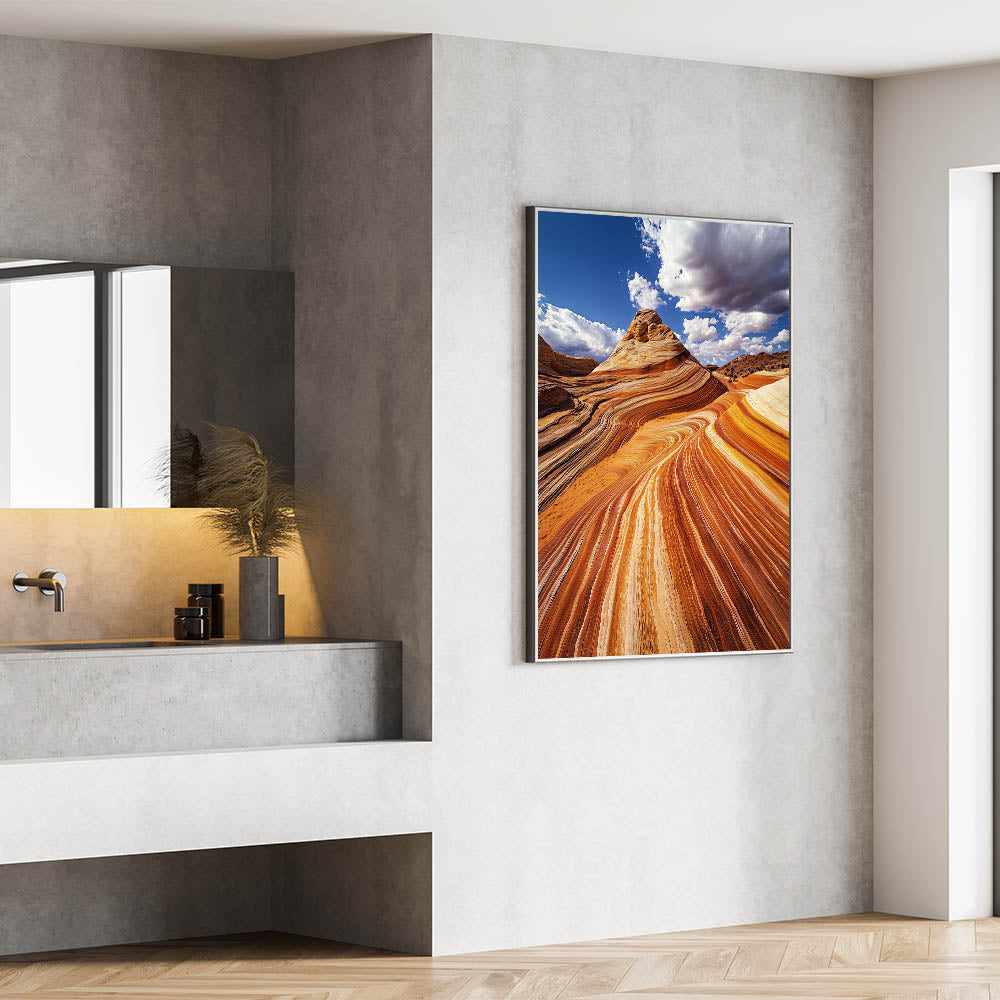 This stunning sandstone waves artwork is ideal for art lovers and nature enthusiasts. It brings the essence of the Arizona desert into your living room, office, or bedroom, serving as a unique and elegant focal point. Celebrate the serene beauty and timeless elegance of desert landscapes with this breathtaking wall art.
