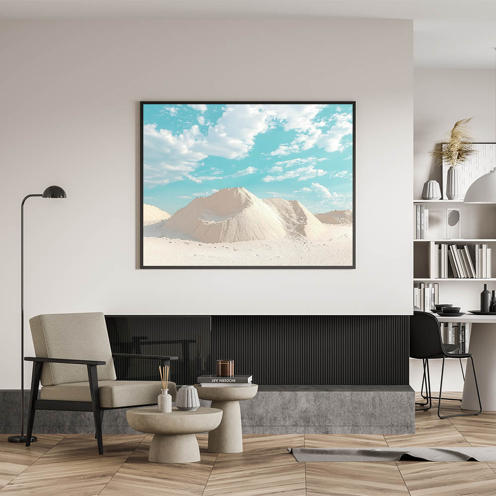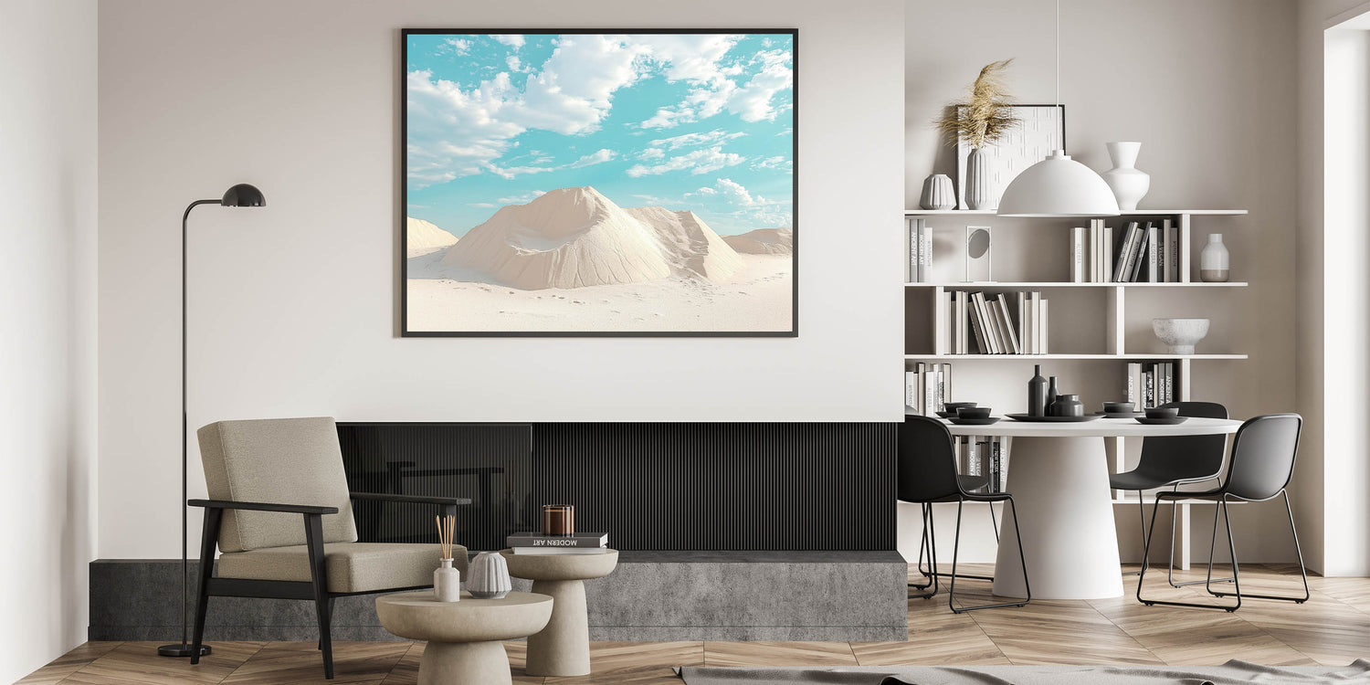 Transform your space with the calming beauty of White Sand Dunes Wall Art. Featuring soft, flowing sand dunes under a brilliant blue sky dotted with fluffy clouds, this artwork captures the serene elegance of desert scenery prints. Perfect for adding a sense of tranquility and lightness, it brings the beauty of nature into your home.