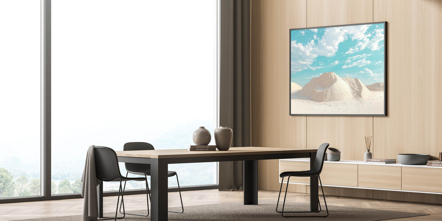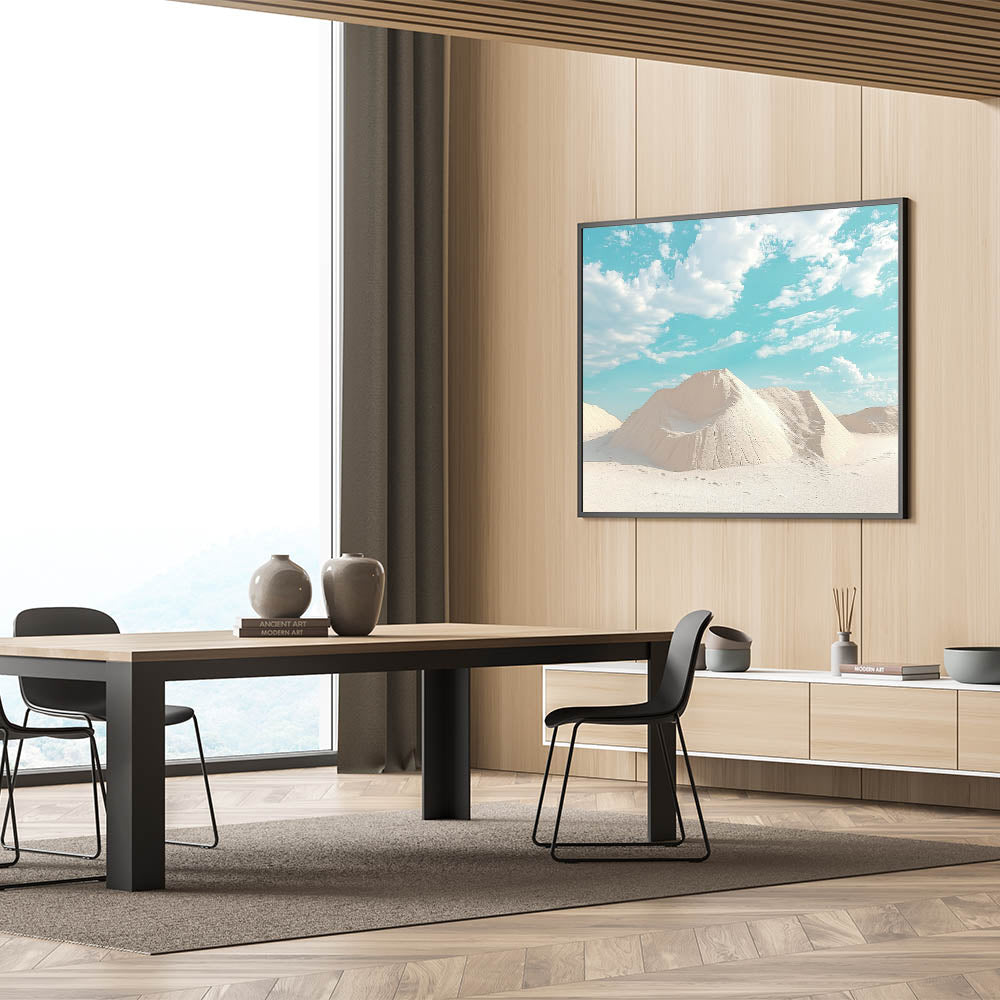 Celebrate the simplicity and natural beauty of the desert with this captivating artwork. Inspired by the tranquil landscapes of white sand deserts, it’s an excellent addition to any art collection. Add this masterpiece to your home for a timeless, serene display of elegance.