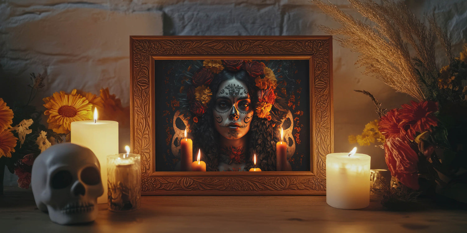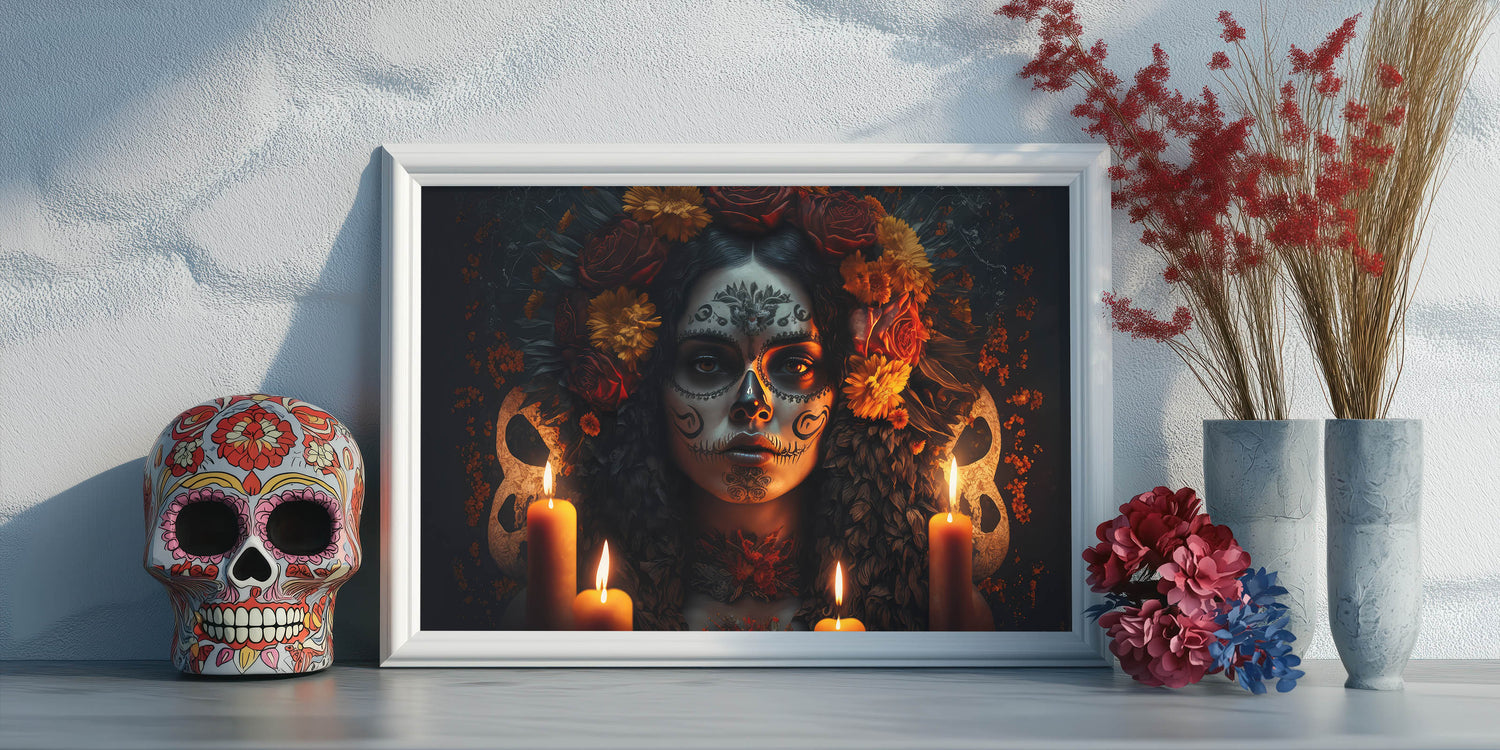 Candlelit Catrina Portrait – Día de los Muertos Wall Art