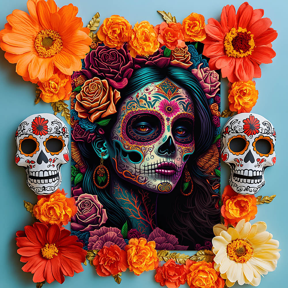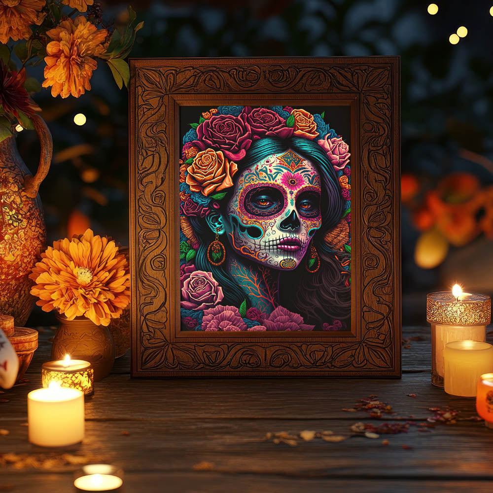 Honor the spirit of Día de los Muertos with this dazzling Canvas Art, a masterpiece of color, culture, and artistic tradition.