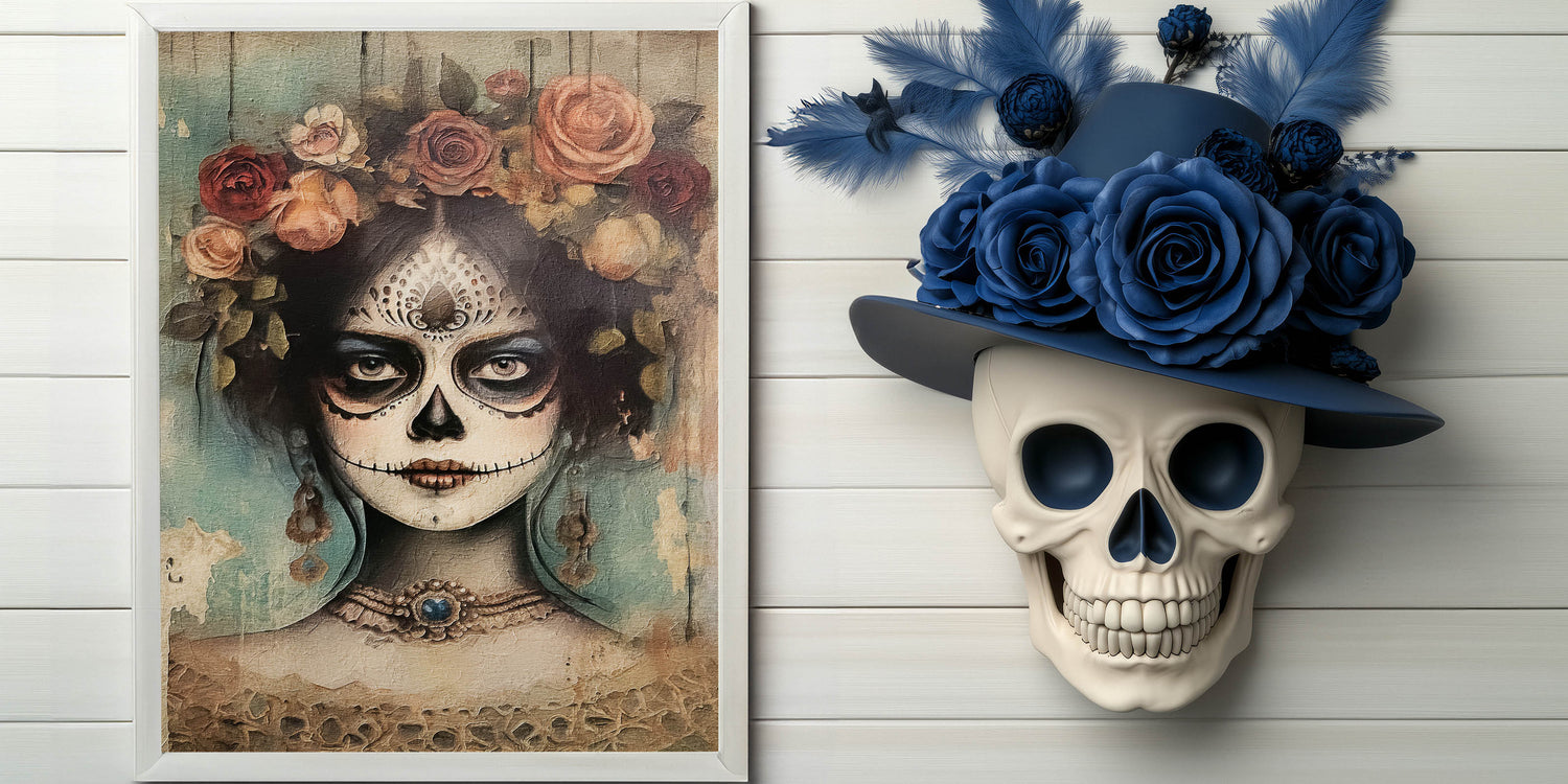 Floral Sugar Skull Woman – Día de los Muertos Wall Art