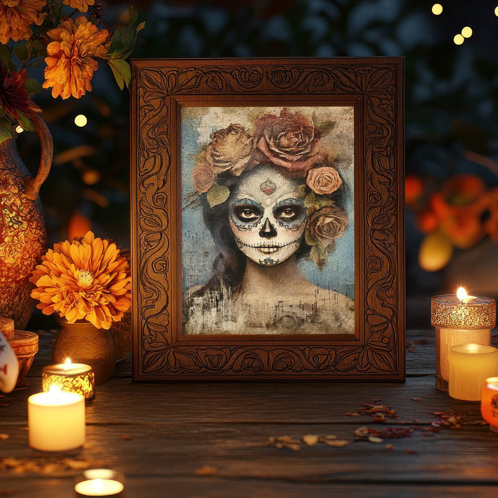 Honor the beauty of tradition with this Día de los Muertos Canvas Art, a mesmerizing tribute to remembrance and artistry.
