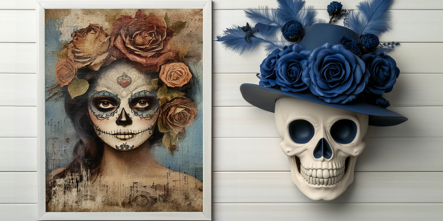 Romantic Sugar Skull Woman – Día de los Muertos Wall Art