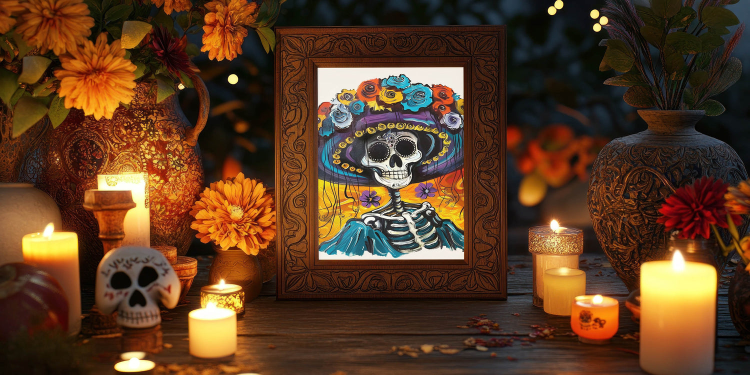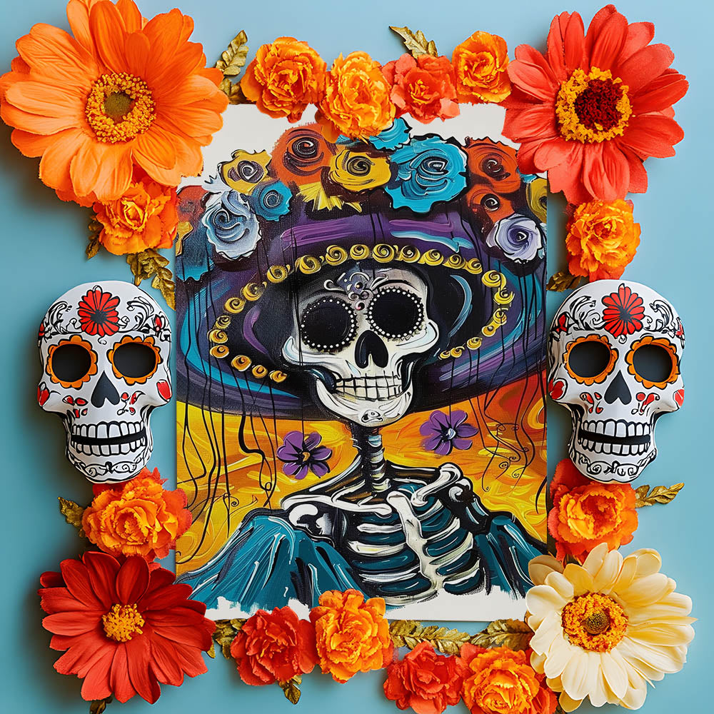 Honor the beauty and festivity of Día de los Muertos with this captivating Canvas Art, a radiant tribute to life and remembrance.