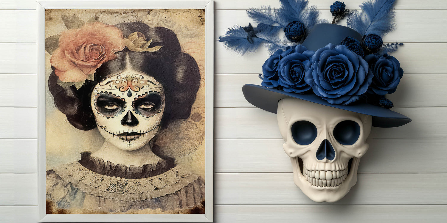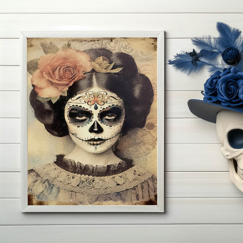 Vintage Sugar Skull Woman – Día de los Muertos Wall Art