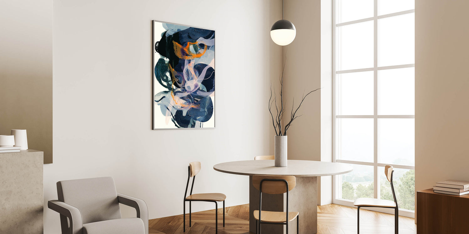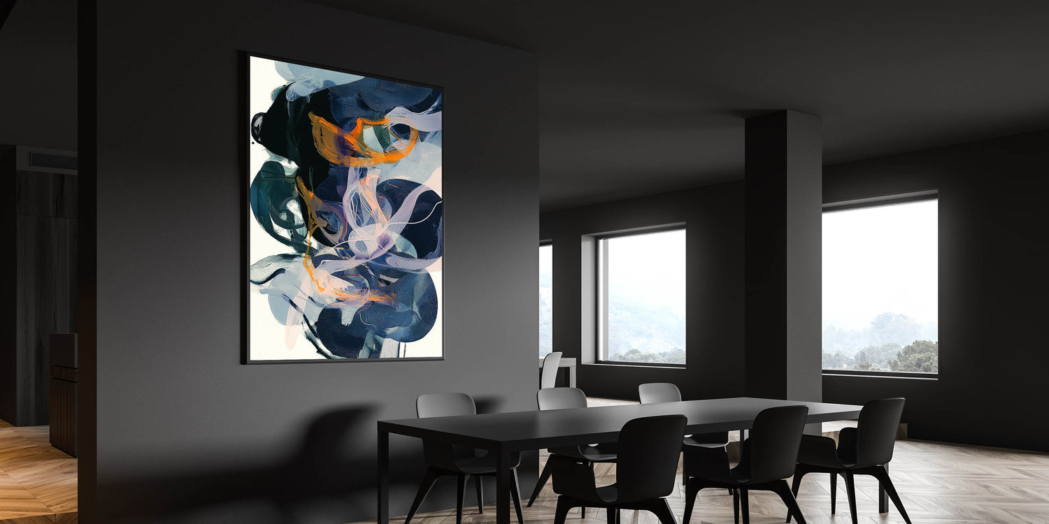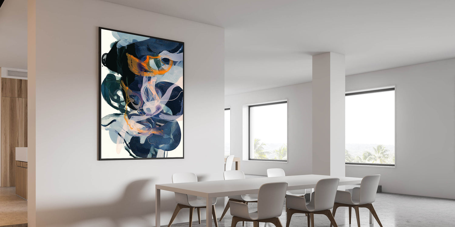 Canvas Art for Dining Area – Abstract Navy & Orange Wall Print