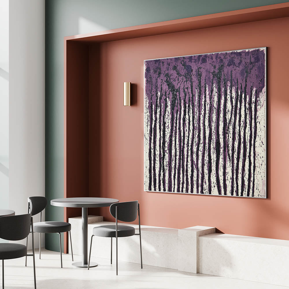 Add a bold artistic statement to your dining area with this elegant dining room wall art, featuring an expressive abstract drip design in deep plum and black tones. The textured paint strokes create a dramatic effect, making this modern dining room art an eye-catching centerpiece for contemporary and industrial-style interiors.