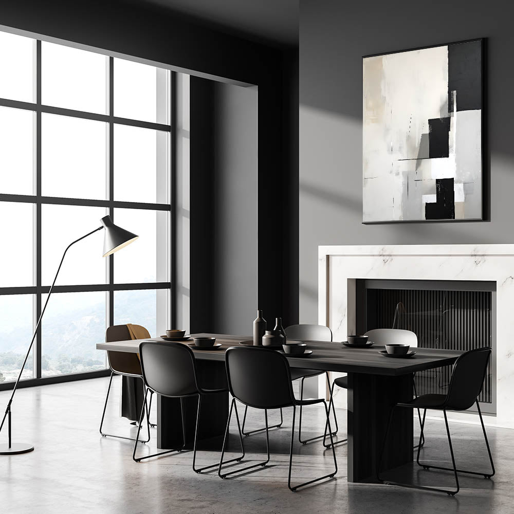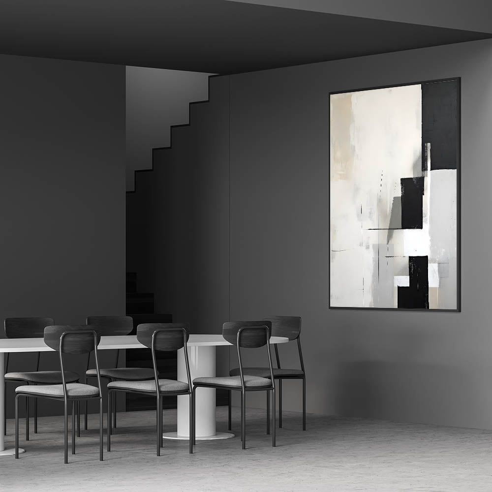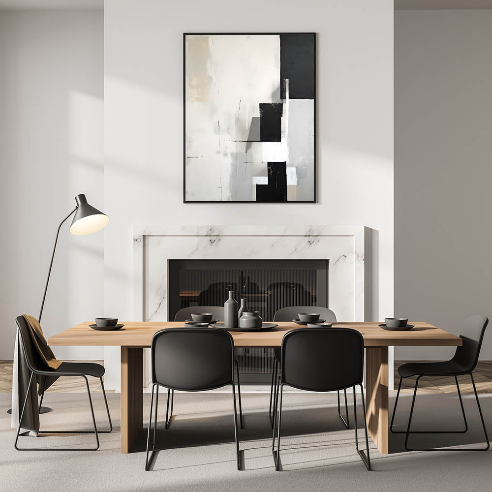 Dining Room Wall Decor - Minimalist Black & White Abstract Art