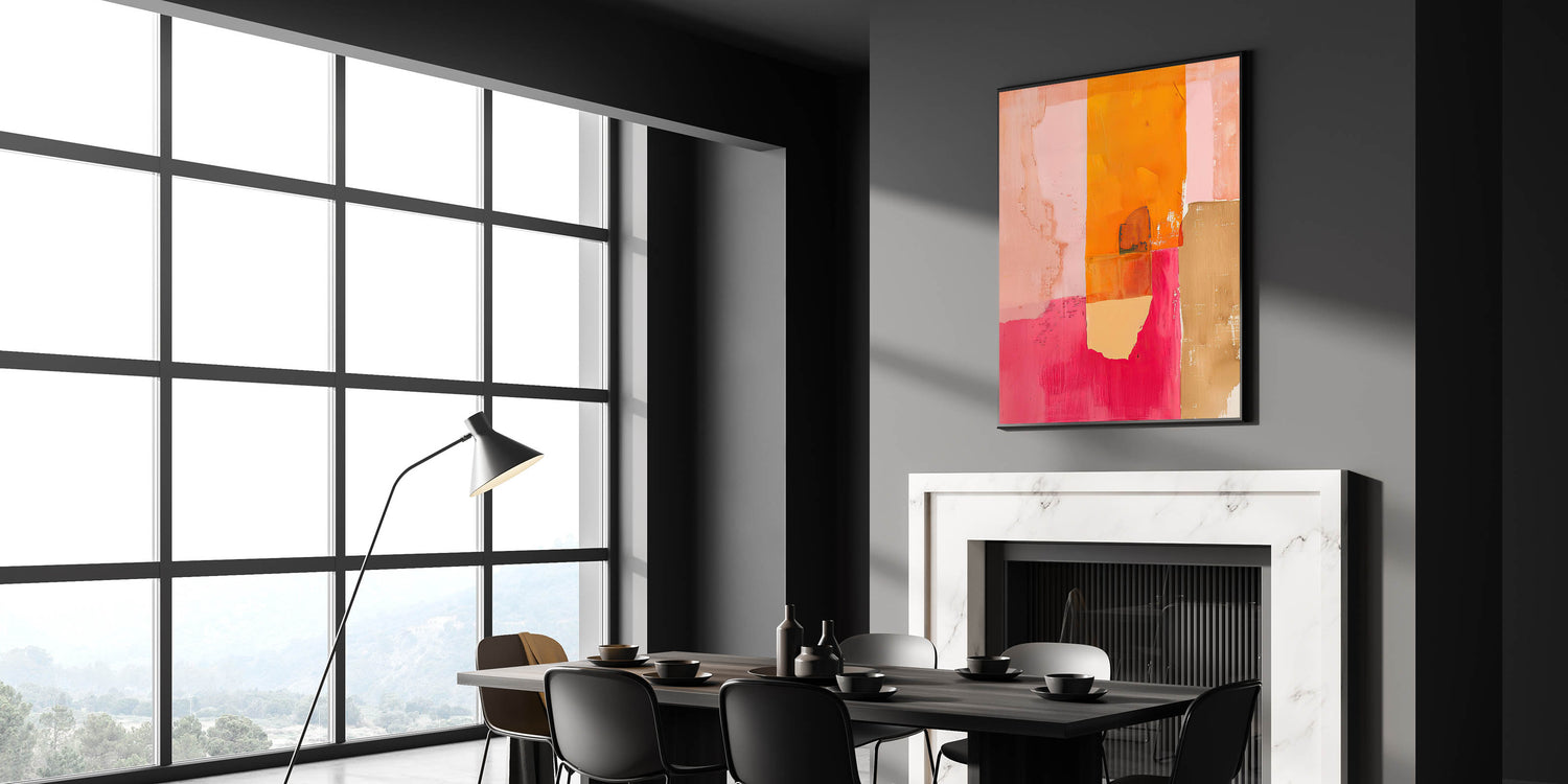 Add a burst of color to your dining space with this elegant dining room wall art, featuring a stunning mix of pink, orange, and beige tones. The bold brushstrokes and layered textures create an energetic yet sophisticated composition, making it a perfect statement piece for modern interiors.
