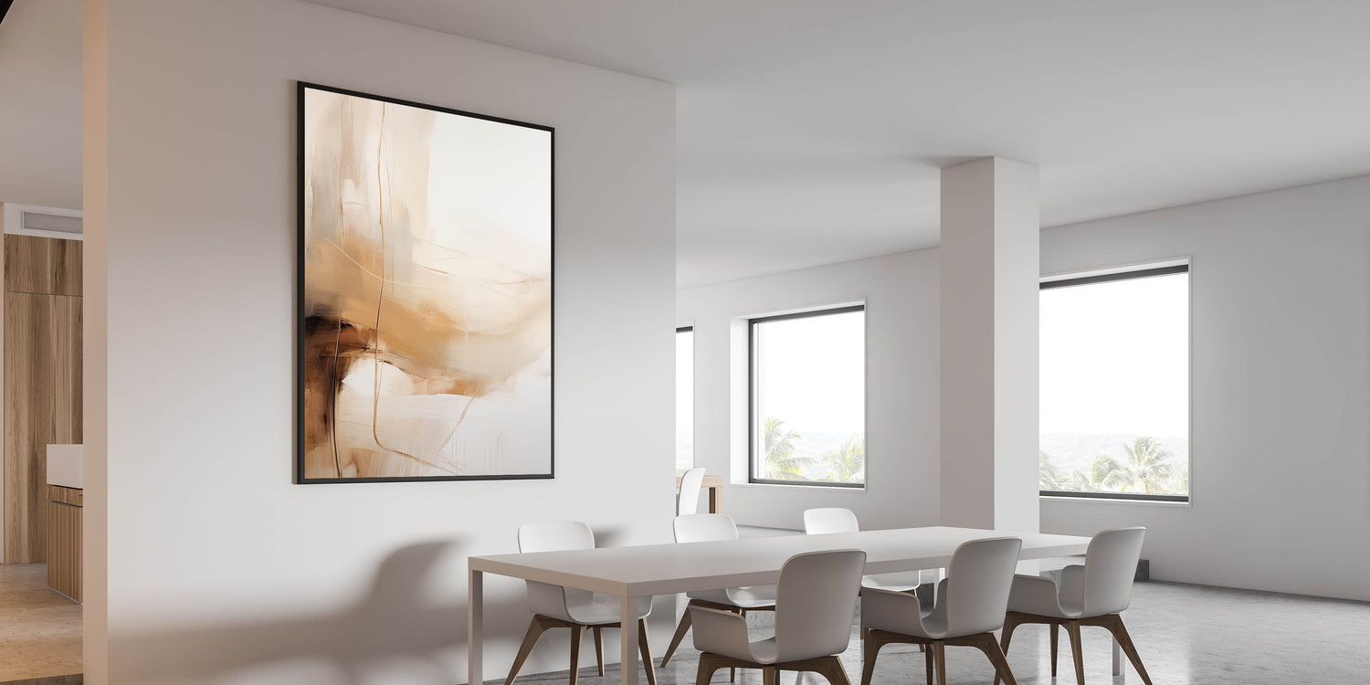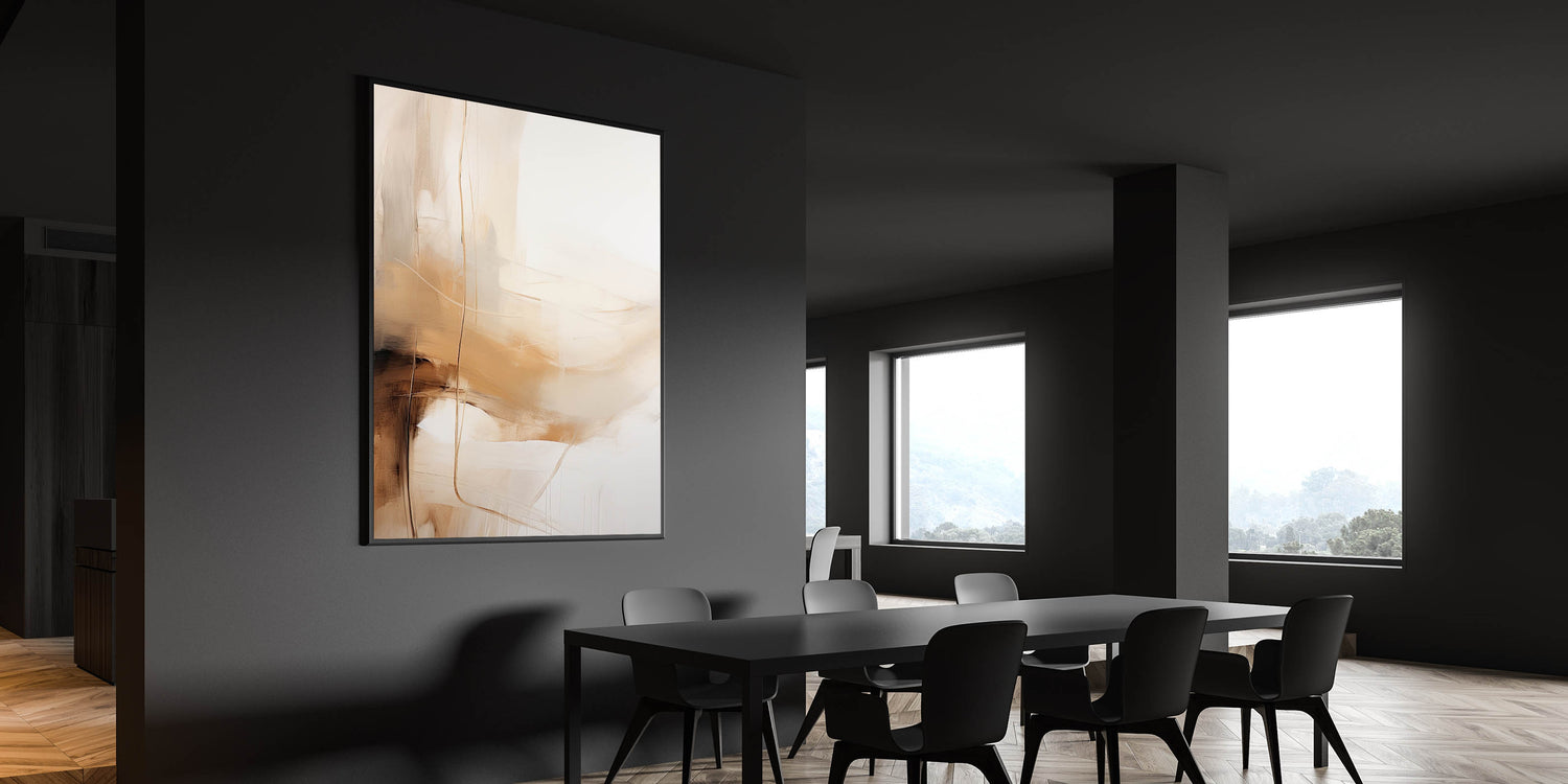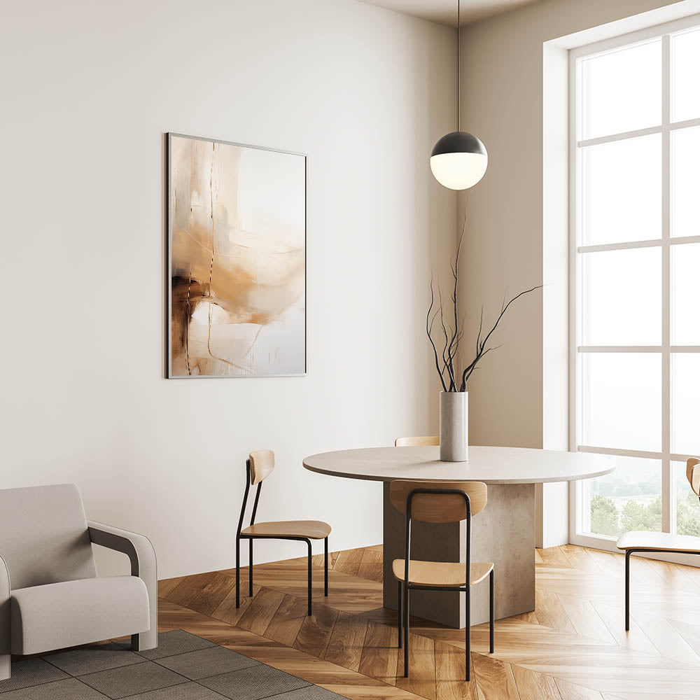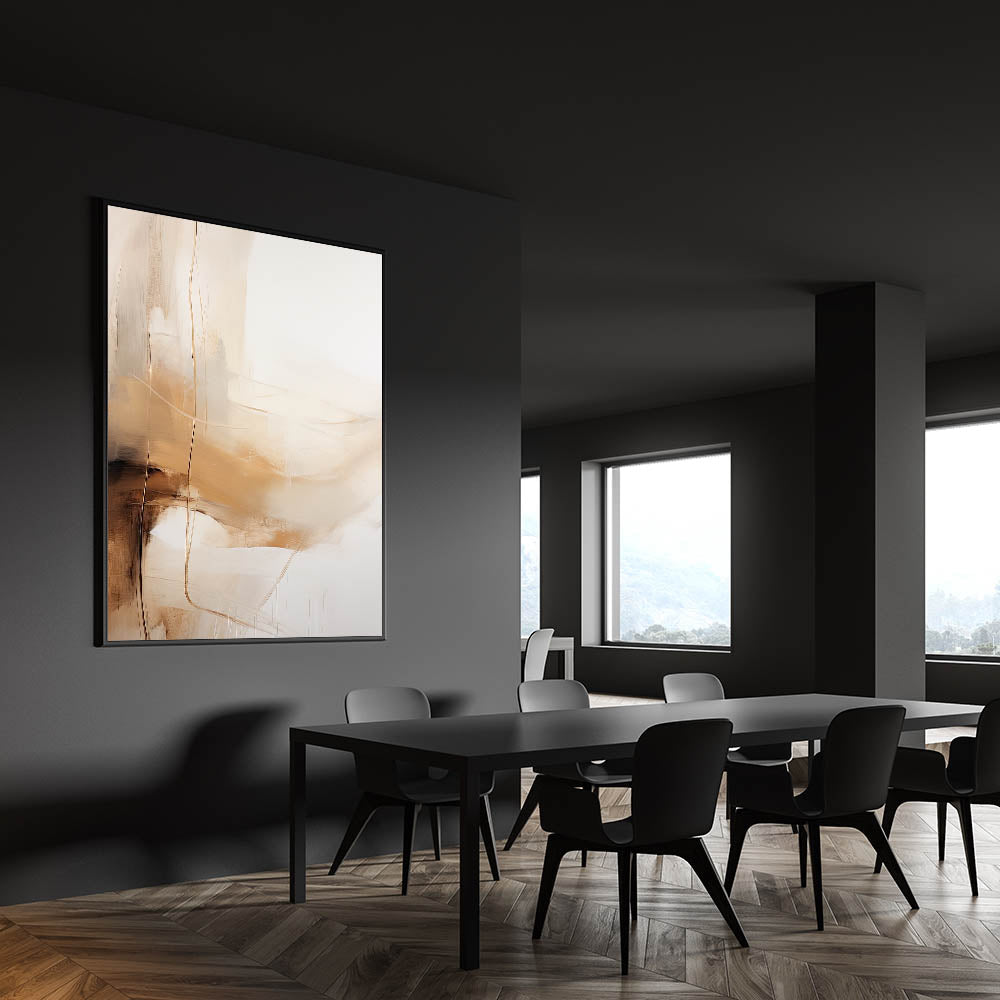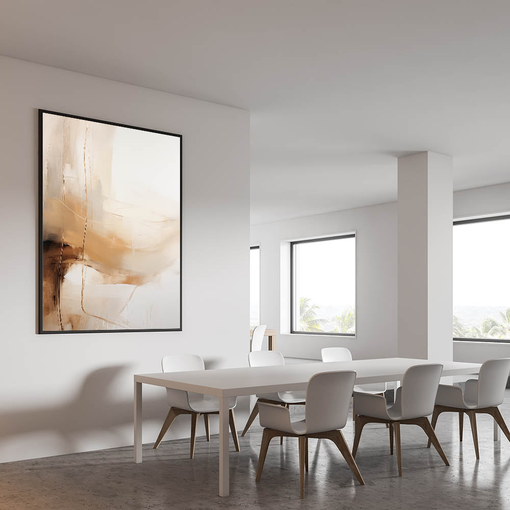 Transform your dining space with this elegant dining room wall art, featuring a modern abstract design in beige and brown tones. Perfectly crafted to enhance contemporary interiors, this piece blends sophistication with artistic expression, making it an ideal choice for any dining area.
