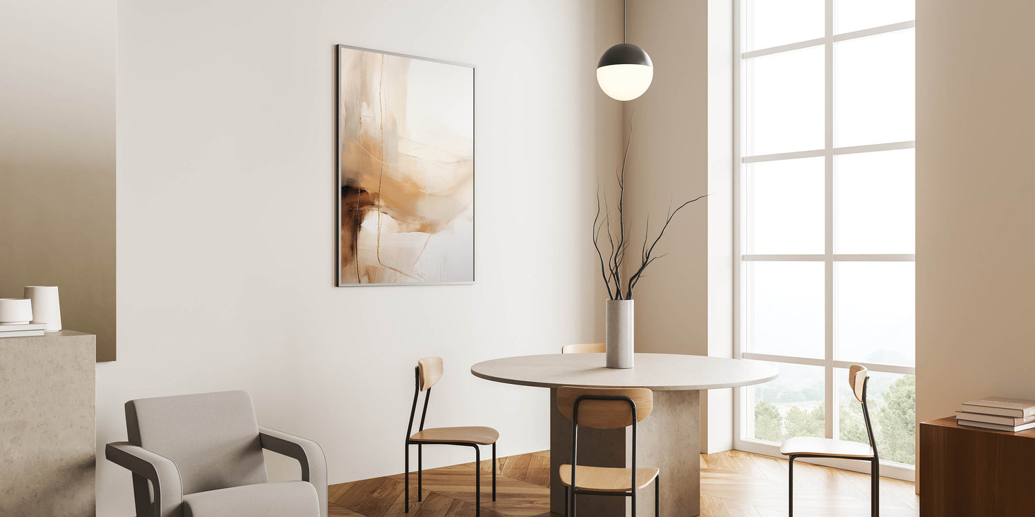 Elegant Dining Room Wall Art - Modern Beige & Brown Abstract Print