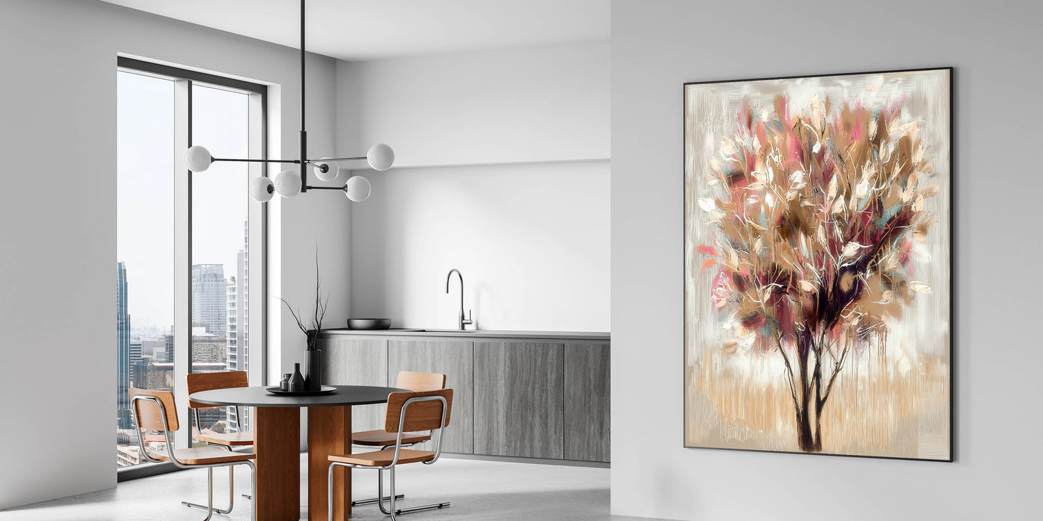 Enhance your dining room wall decor with this contemporary dining art piece that brings nature indoors. Whether placed above a dining table or as part of a gallery wall, this serene tree artwork is a timeless addition to any space.