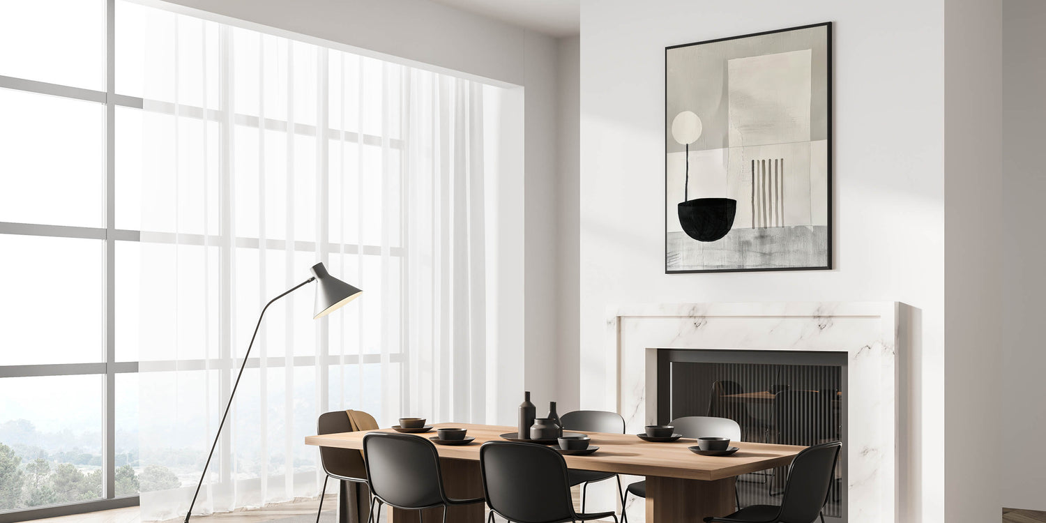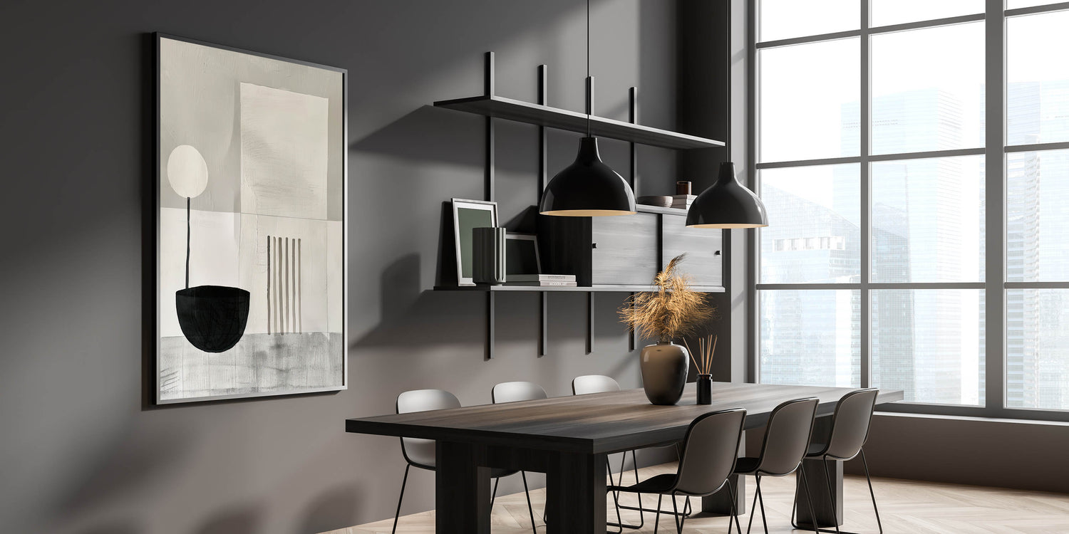 Enhance your dining space with this modern dining area art piece, featuring a striking black-and-white minimalist composition. The geometric forms and clean lines create a sophisticated, contemporary aesthetic, making this elegant dining room wall art an ideal addition to modern, Scandinavian, or industrial-style interiors.