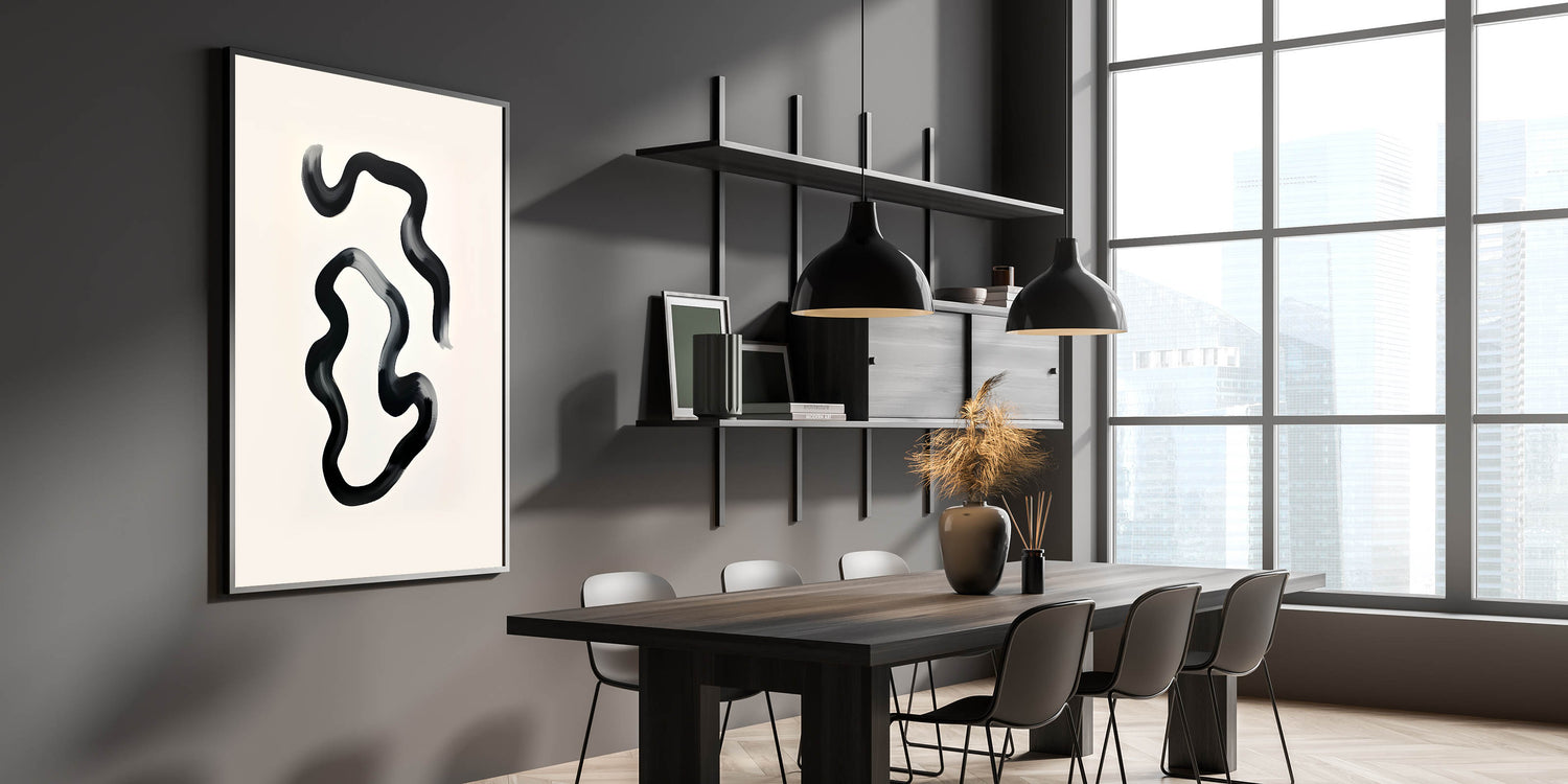 Modern Dining Room Art – Black and White Abstract Wall Décor