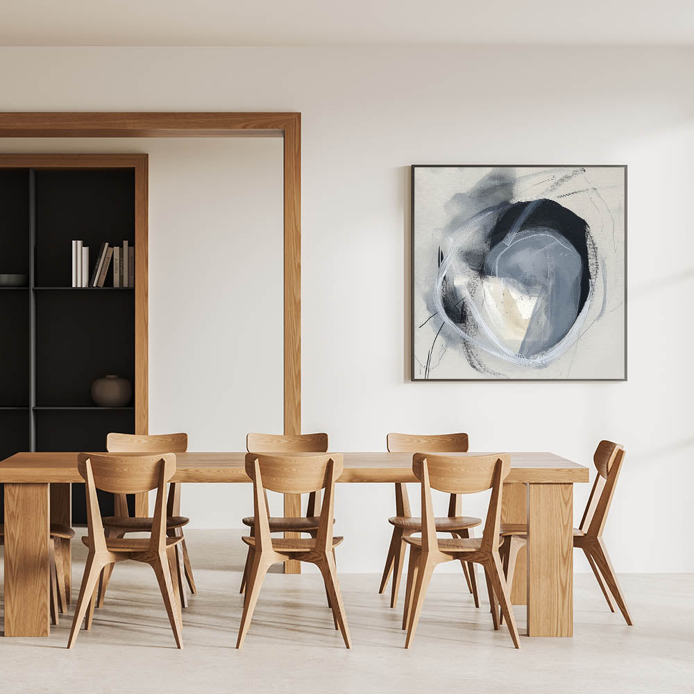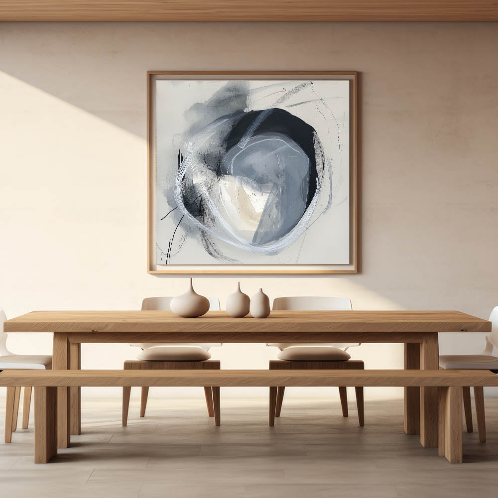 Elevate your dining space with this elegant dining room wall art, featuring a captivating blend of black, gray, and white tones in an abstract design. Perfect for those who appreciate contemporary dining art pieces, this modern artwork enhances any setting with a sophisticated touch.