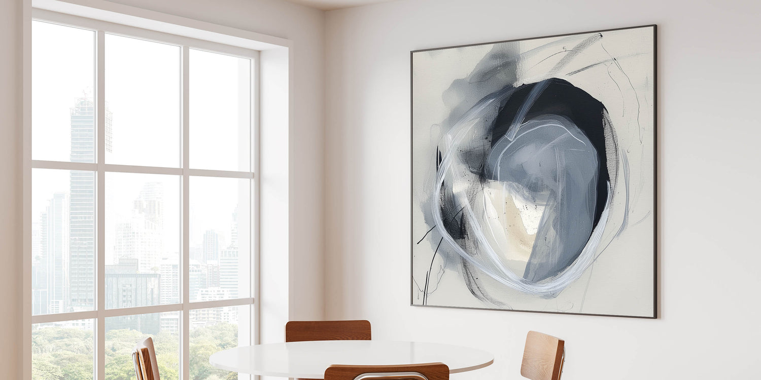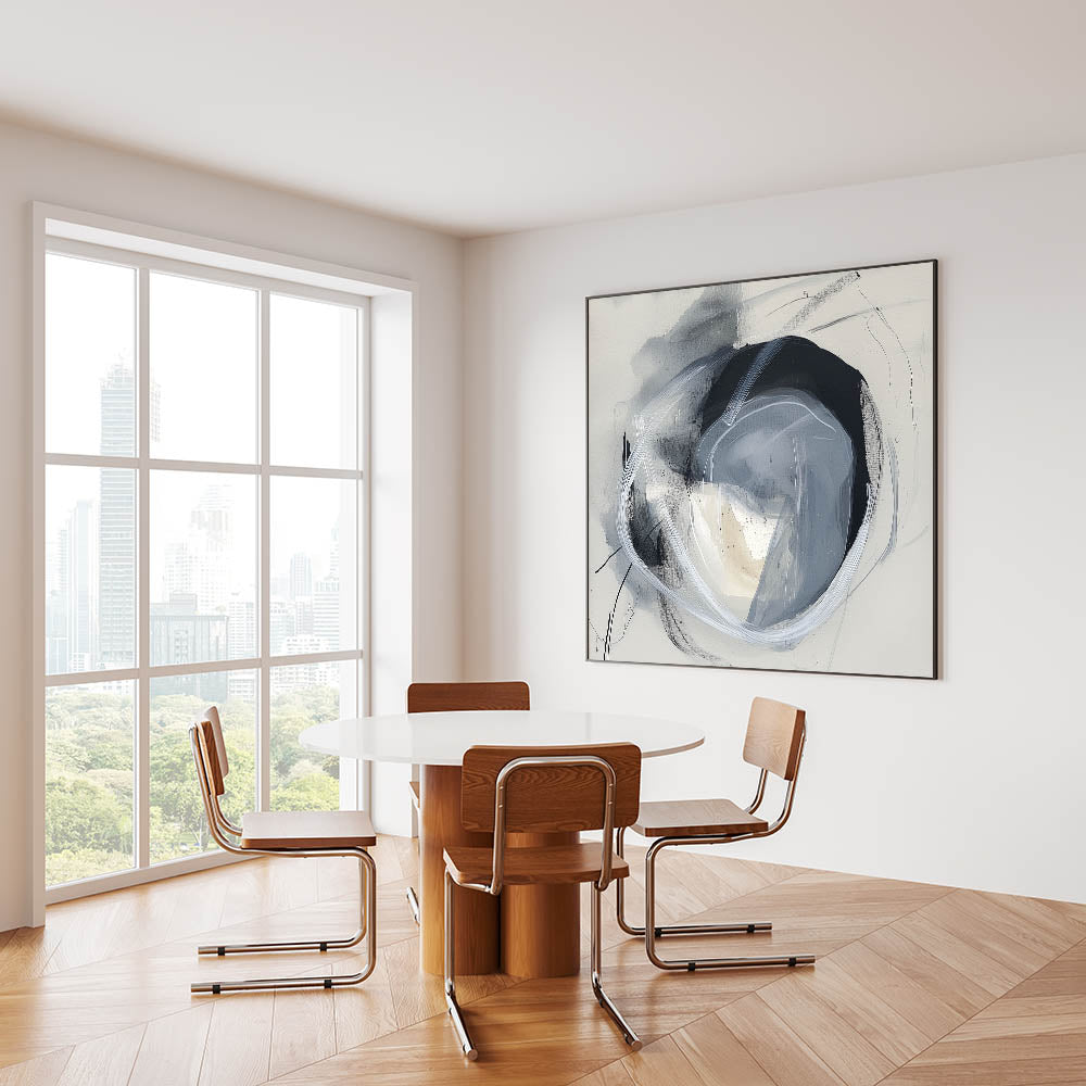 Add a sophisticated flair to your dining area with this striking piece. Whether you prefer a minimalist black and white palette or a bold abstract expression, this artwork complements modern interiors beautifully. Perfect as a centerpiece for family meals or as a refined touch for upscale dining spaces.