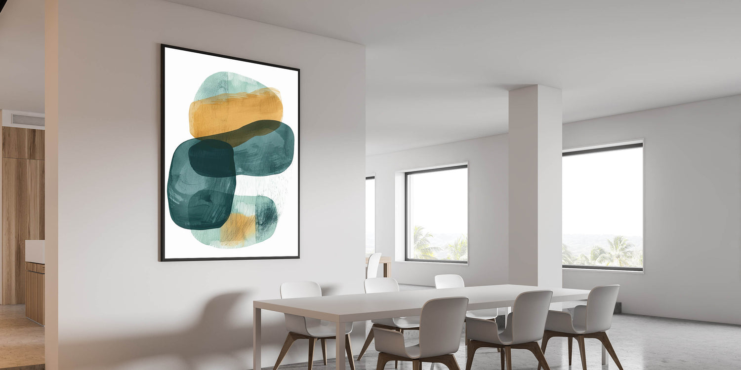 This contemporary dining art piece is designed to complement both minimalistic and bold dining room settings. Whether you prefer a rolled canvas print for dining area flexibility or a framed dining room print for a structured look, this artwork elevates your space with timeless elegance.
