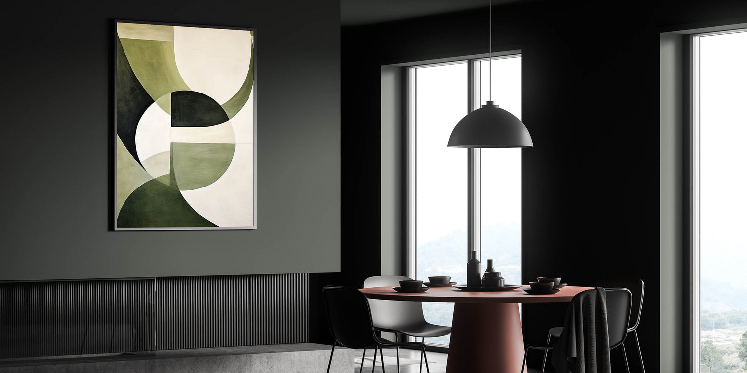 Modern Dining Room Wall Art – Abstract Green and White Canvas Print
