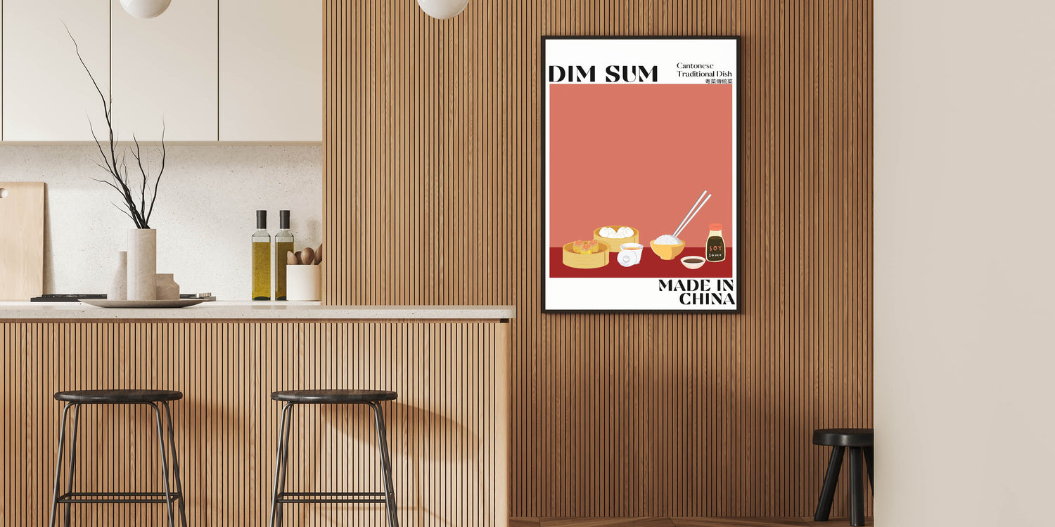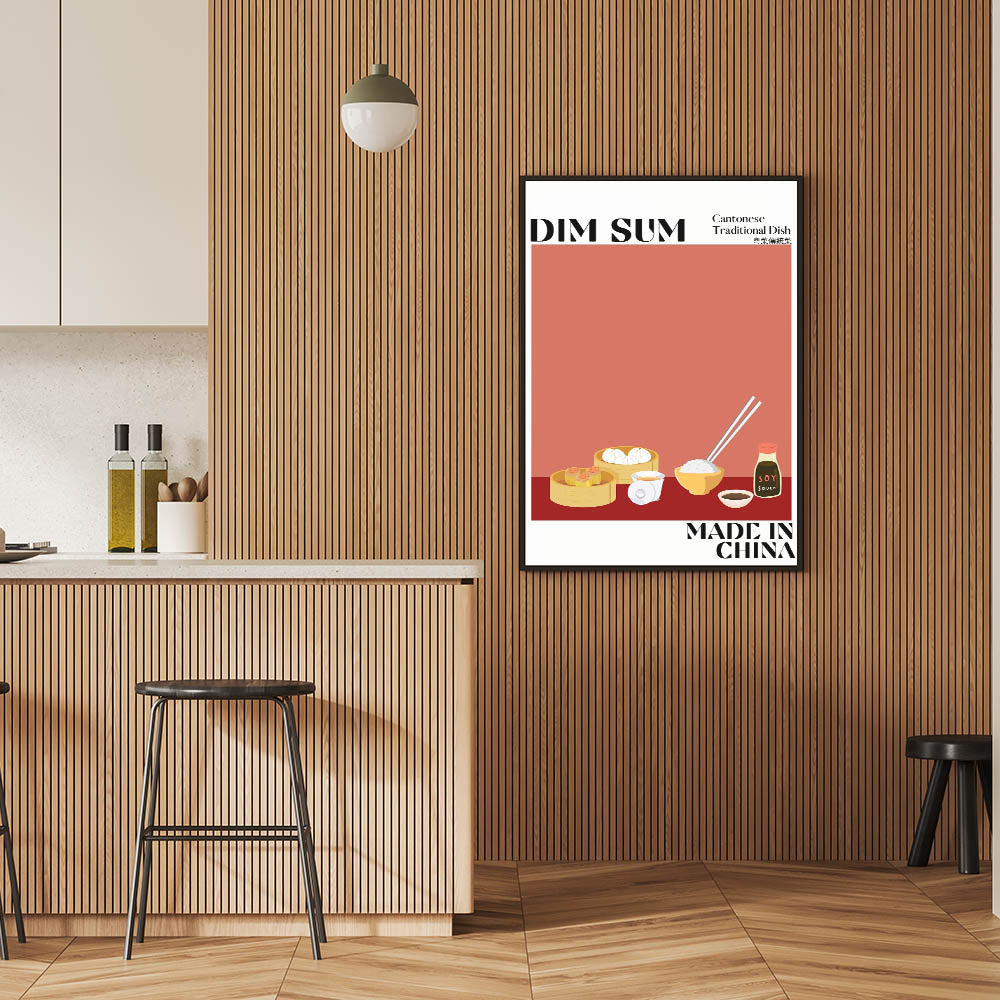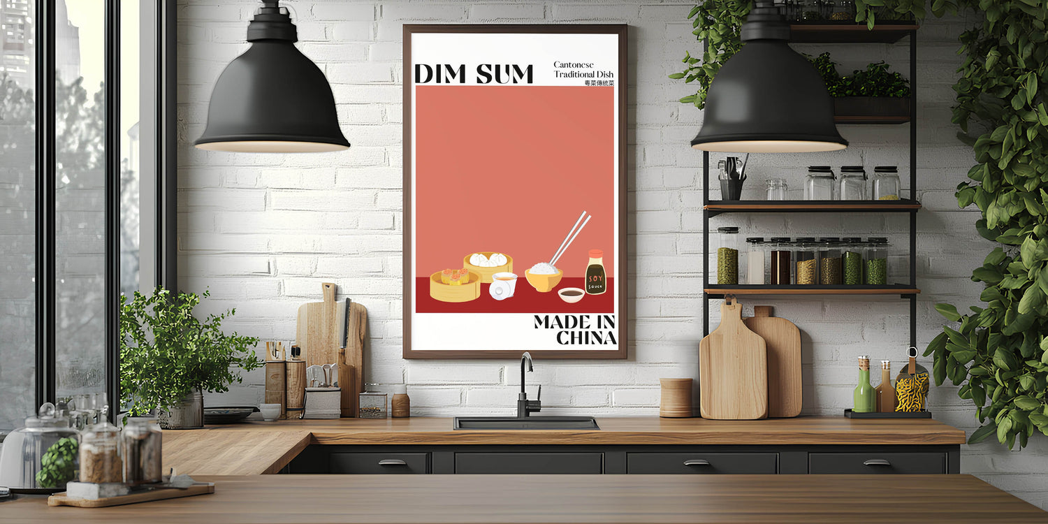 Celebrate the elegance of Cantonese cuisine with this Dim Sum dishes wall art, a beautifully minimalist representation of this iconic culinary tradition. Featuring steamed dumplings, bao buns, rice, tea, and soy sauce, this kitchen wall art highlights the artistry of Dim Sum culture. The warm color palette and clean composition make this culinary wall art a stylish addition to any home, restaurant, or tea house.