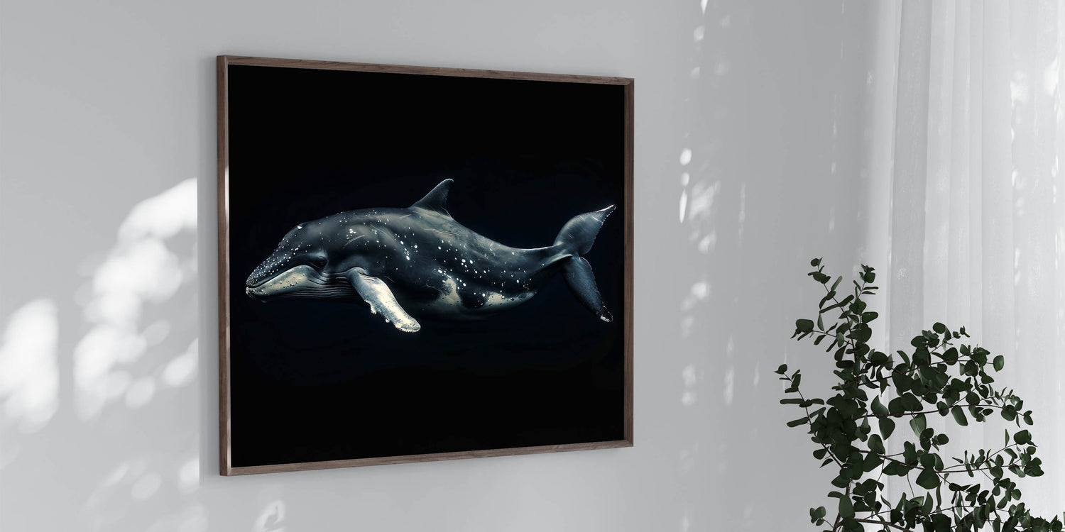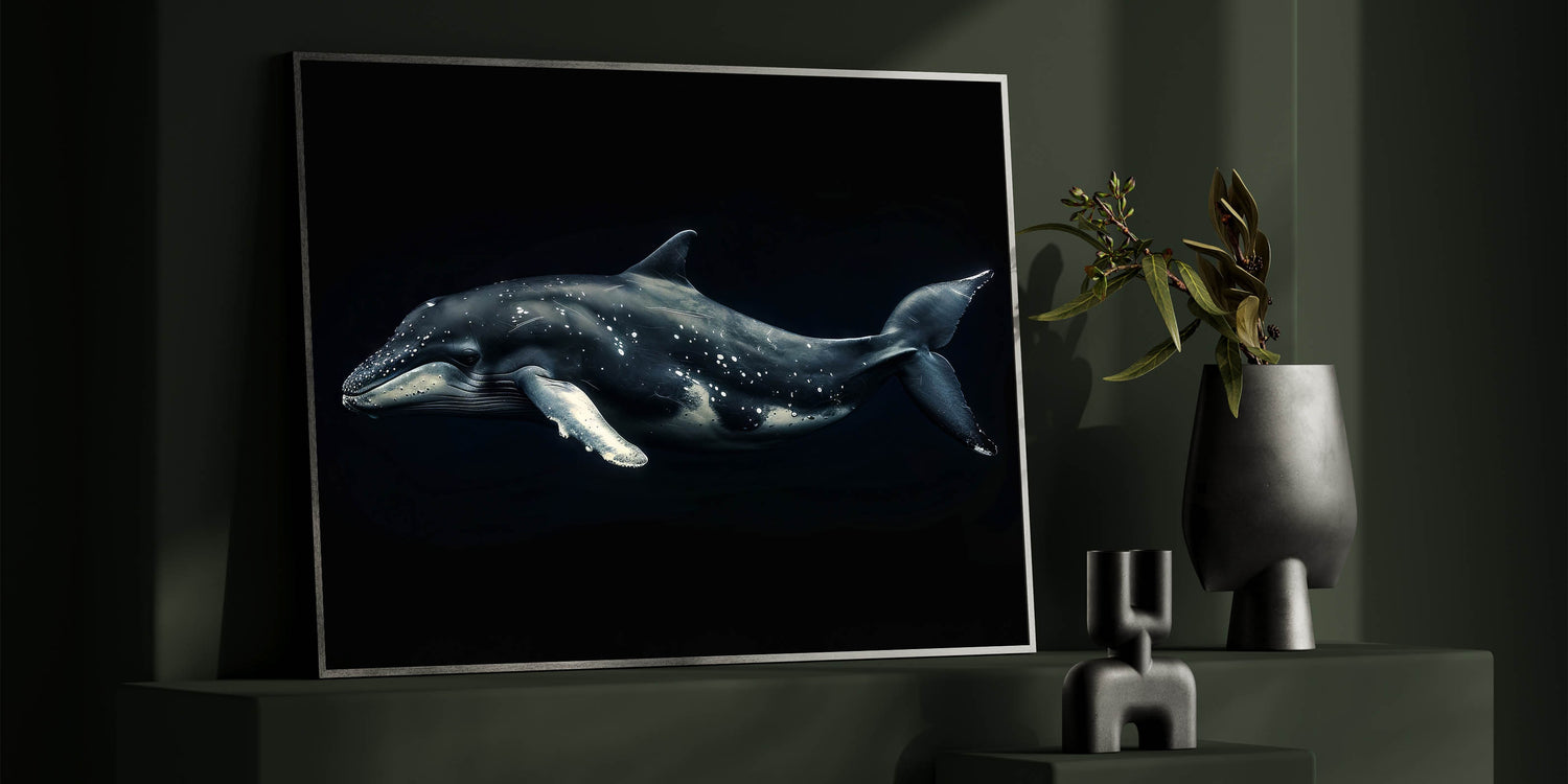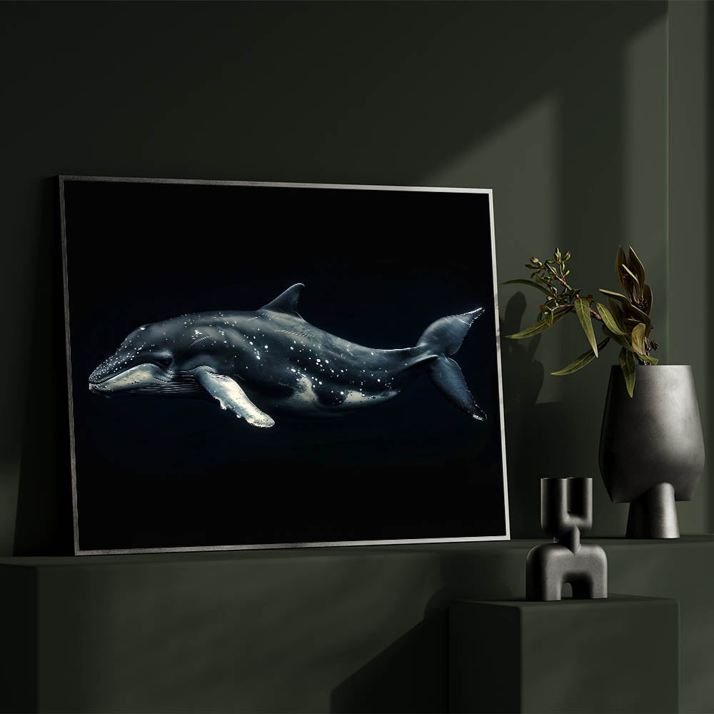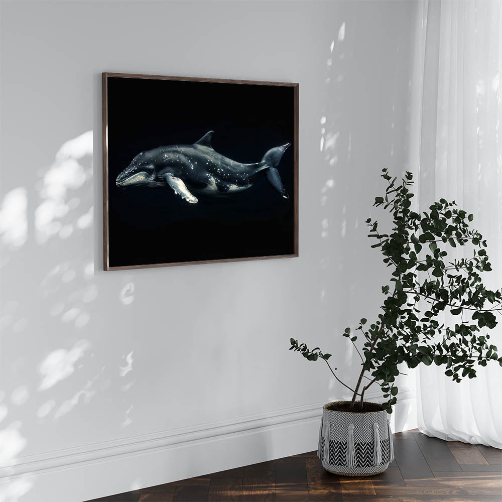 Embrace the mystery and beauty of the deep sea with this Majestic Dolphin Wall Art. This striking piece features a dolphin gliding gracefully through the dark waters, its sleek form highlighted against a shadowy background. Perfect for adding a touch of drama and elegance to any room, this artwork is ideal for those who appreciate the enigmatic allure of marine life.