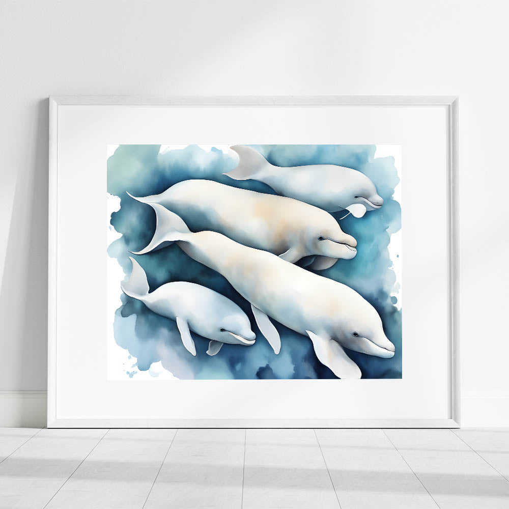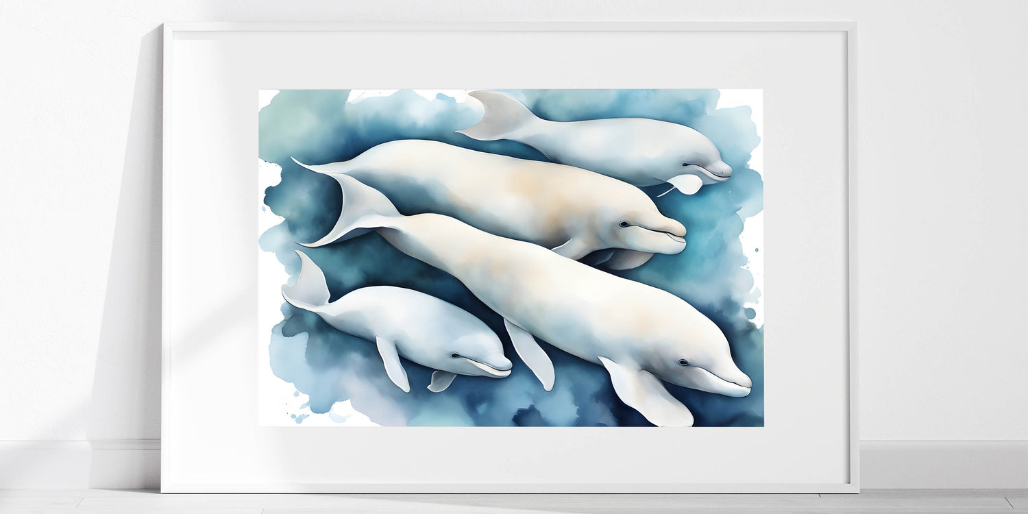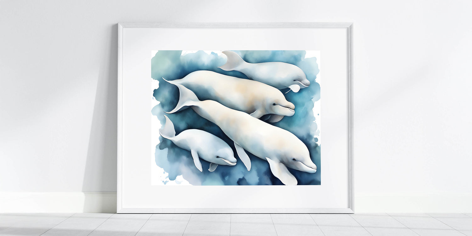 Immerse yourself in the tranquil beauty of the ocean with this Serene Dolphin Wall Art. This elegant piece features a pod of dolphins swimming gracefully through soft, watercolor-inspired waves. The gentle hues of blue and white create a calming atmosphere, making this artwork a perfect addition to any space in need of a peaceful, coastal touch.