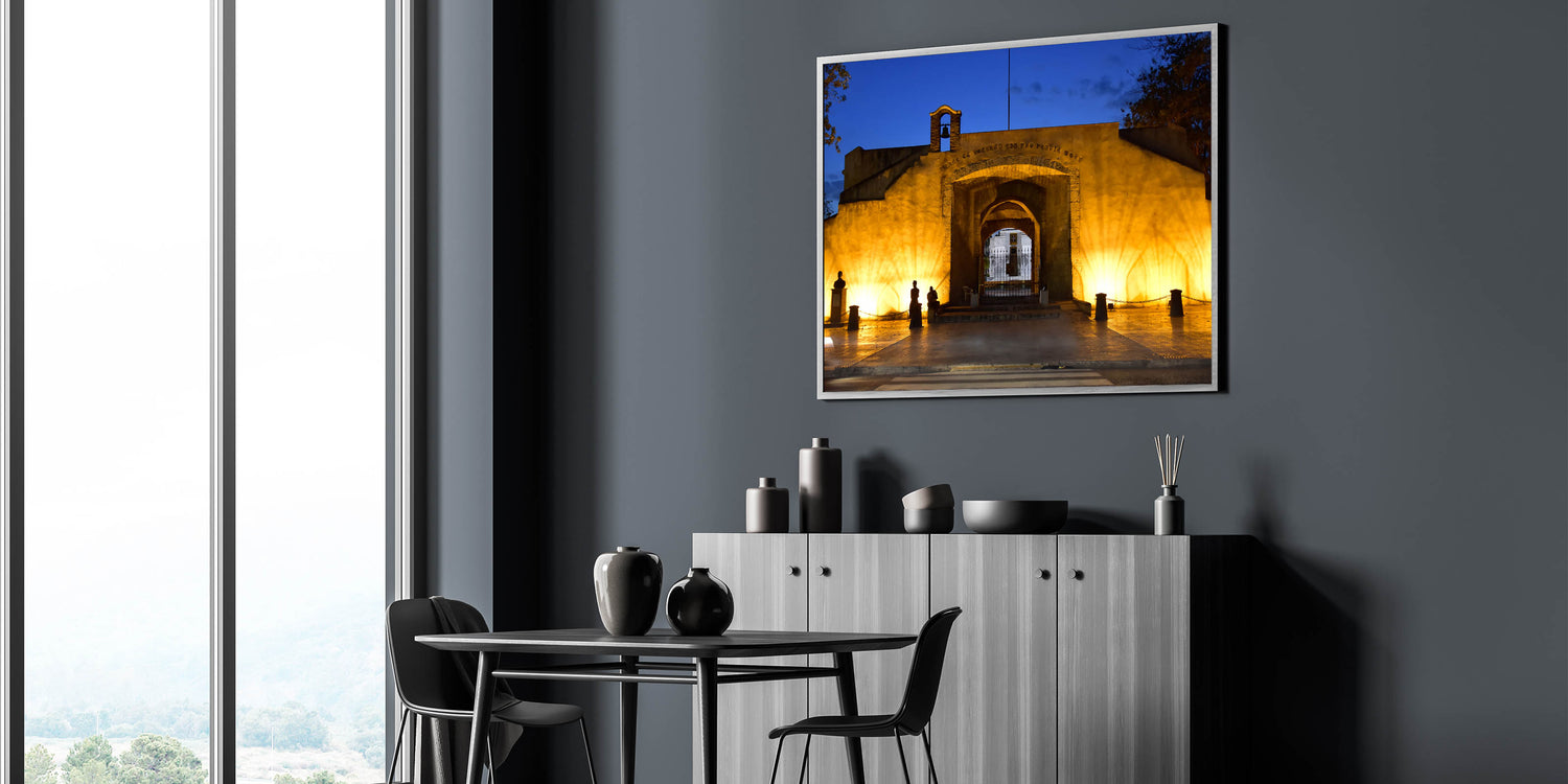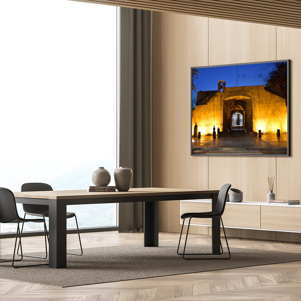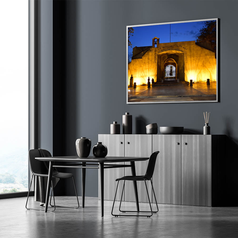 Capture the rich history of the Dominican Republic with this stunning wall art, featuring a beautifully illuminated colonial gate in the heart of the country. This iconic scene, with its warm golden tones and deep blue twilight sky, evokes the deep cultural roots of Santo Domingo’s historic architecture. Perfect for fans of Caribbean scenery art, this handcrafted Dominican piece adds a touch of authenticity and history to any room, making it an ideal centerpiece for home or office decor.