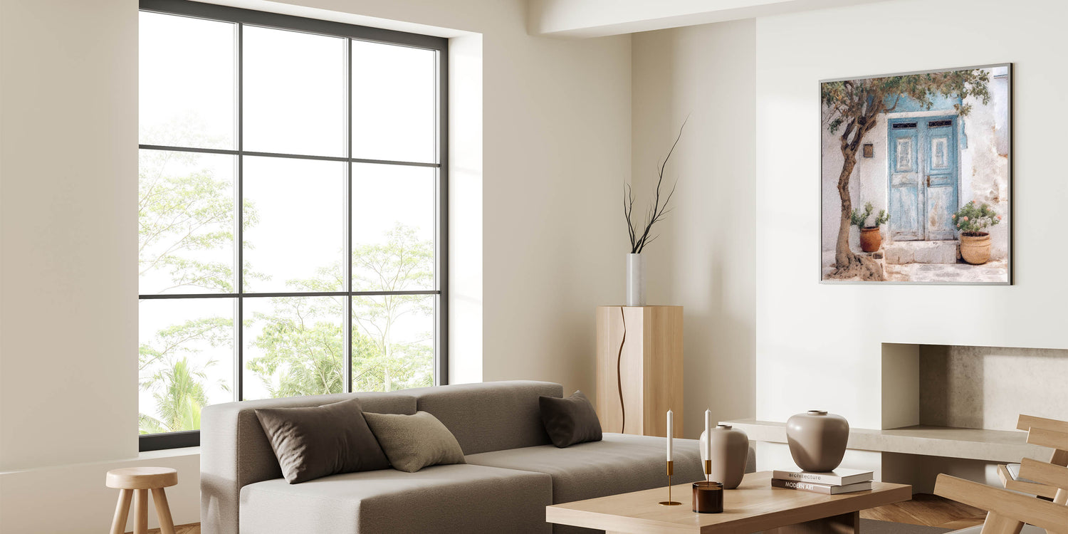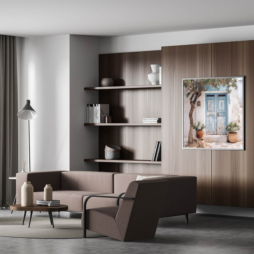 Bring the peaceful beauty of the Greek islands into your home with this lovely print. It’s a timeless piece that exudes tranquility and adds a touch of rustic charm to any room.