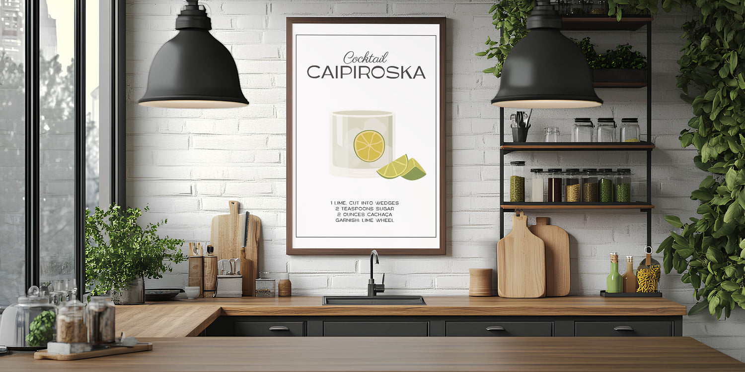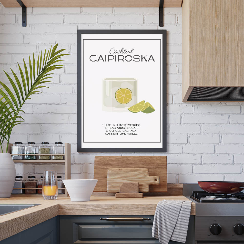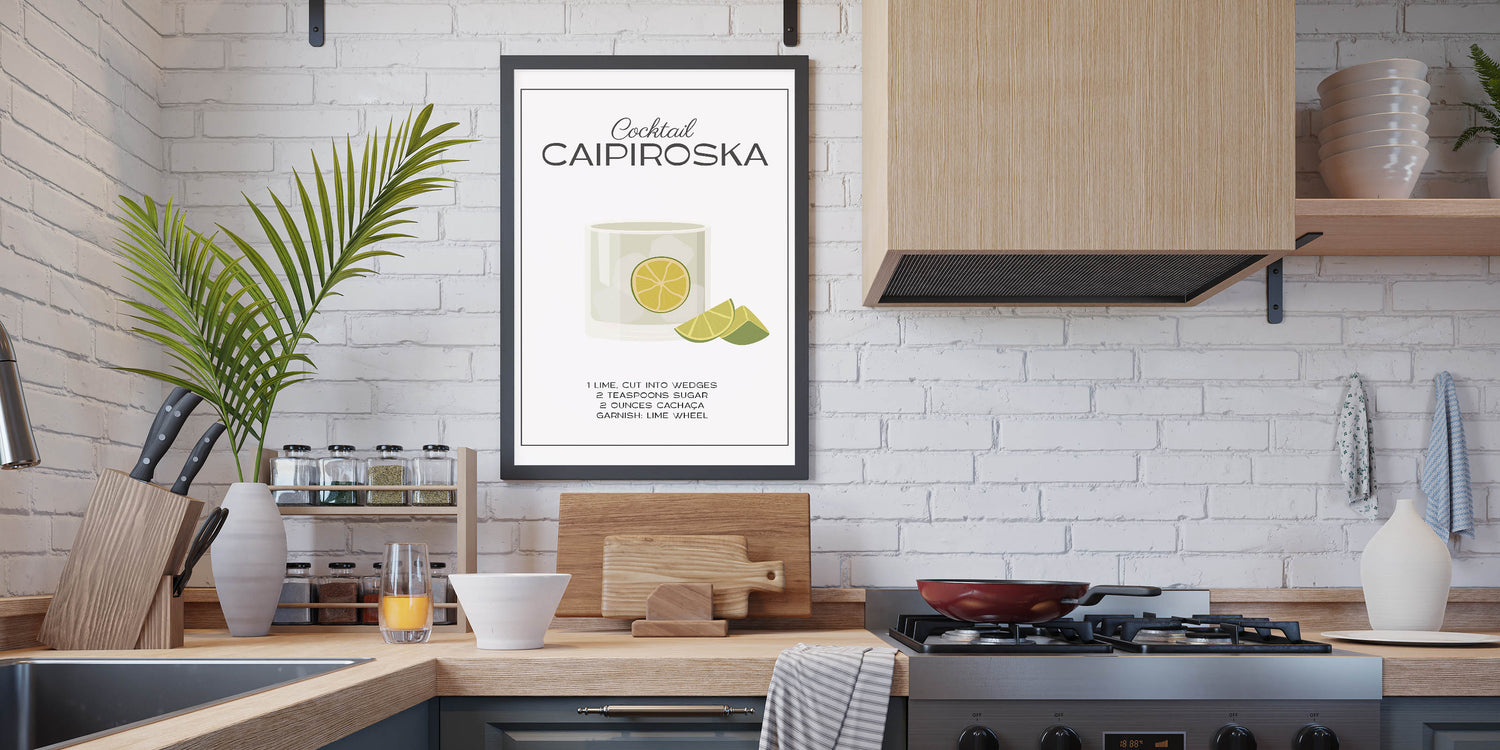 Whether you're a mixologist or simply love stylish wine art decor, this Caipiroska kitchen art print adds a refined, refreshing touch to your space.